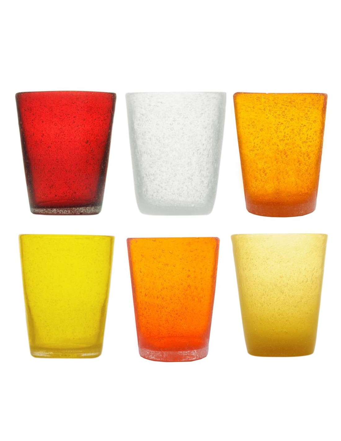 Set 6 bicchieri in vetro soffiato colorato nella massa.
