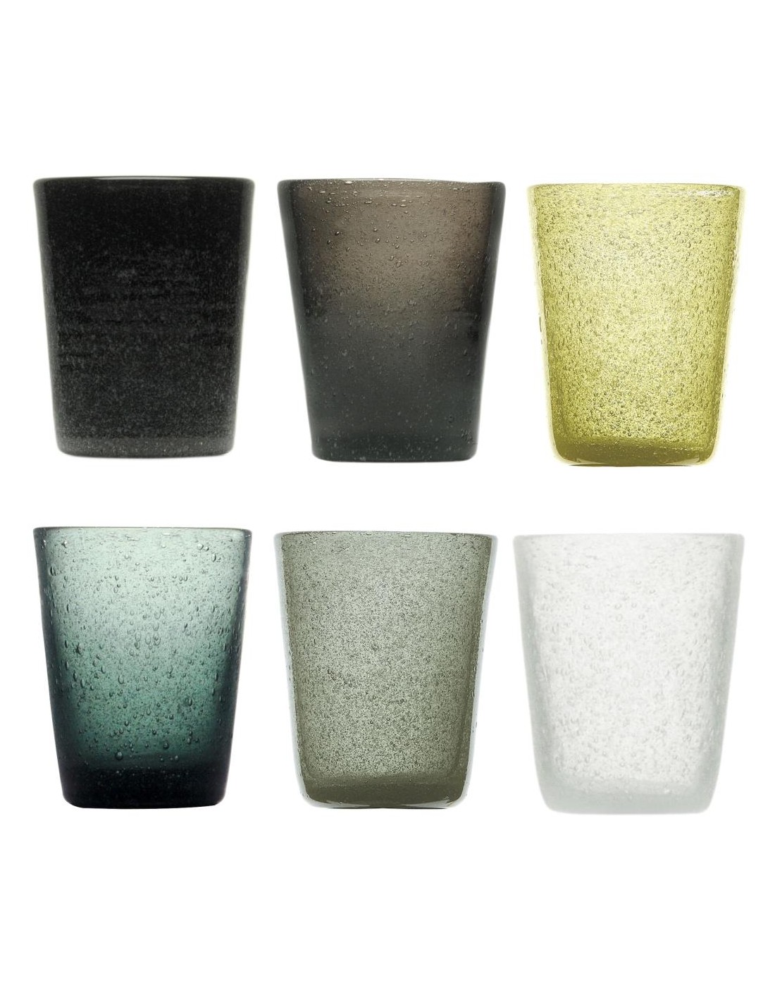 Set 6 bicchieri in vetro soffiato colorato nella massa.
