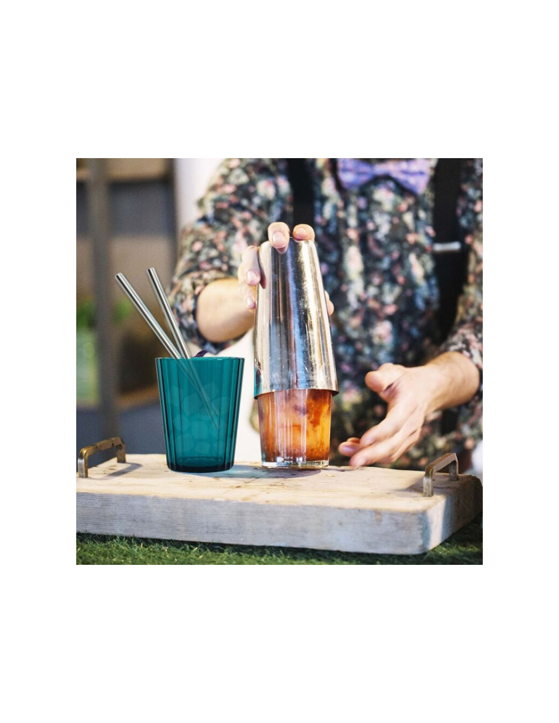 Questo shaker professionale è completo di bicchiere in acciaio INOX e bicchiere in vetro.