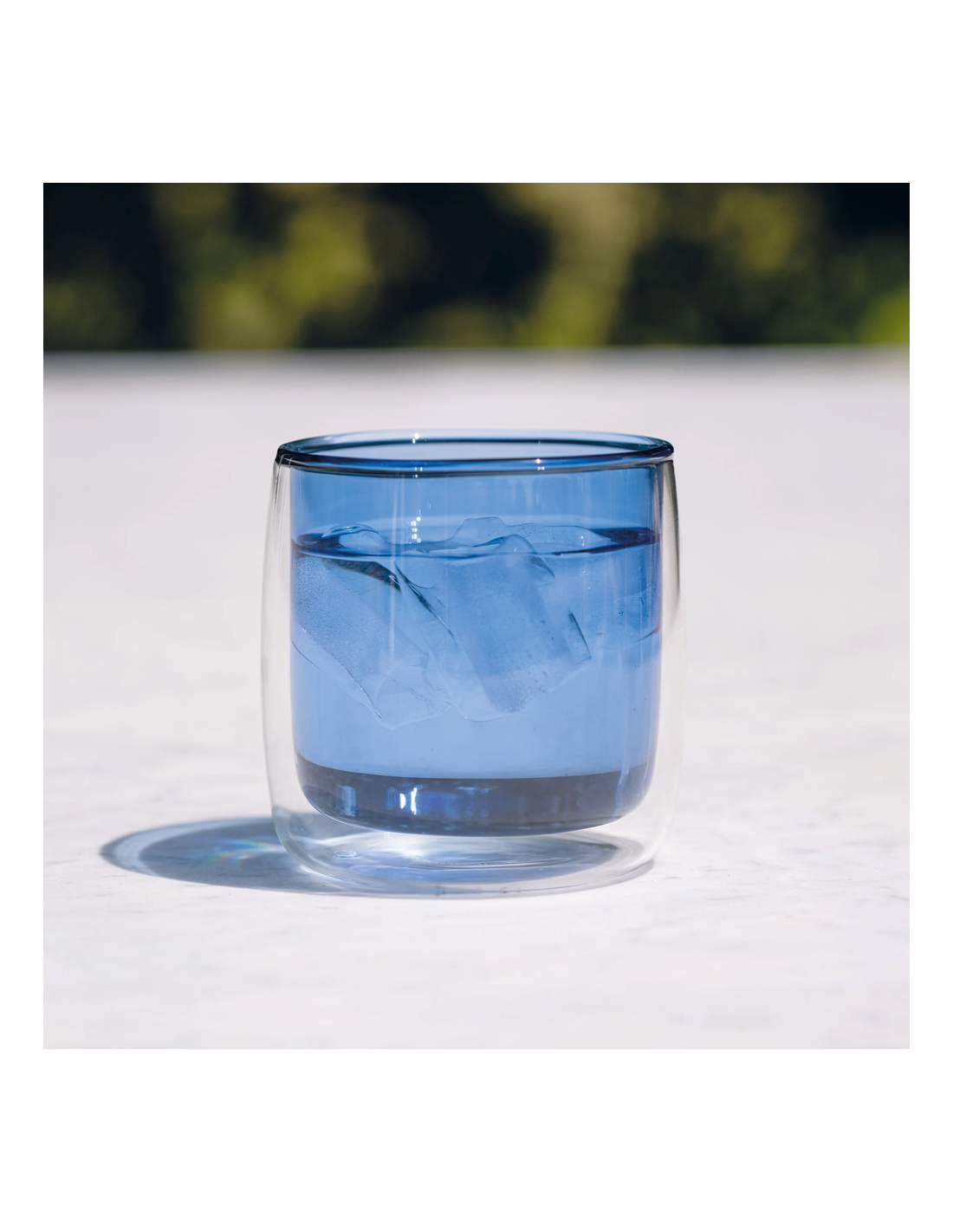 Realizzato in vetro borosilicato a doppia parete, soffiato e lavorato a mano, presenta un elegante contrasto tra l’esterno trasparente e l’interno colorato, offrendo un effetto visivo raffinato e un miglior isolamento termico.