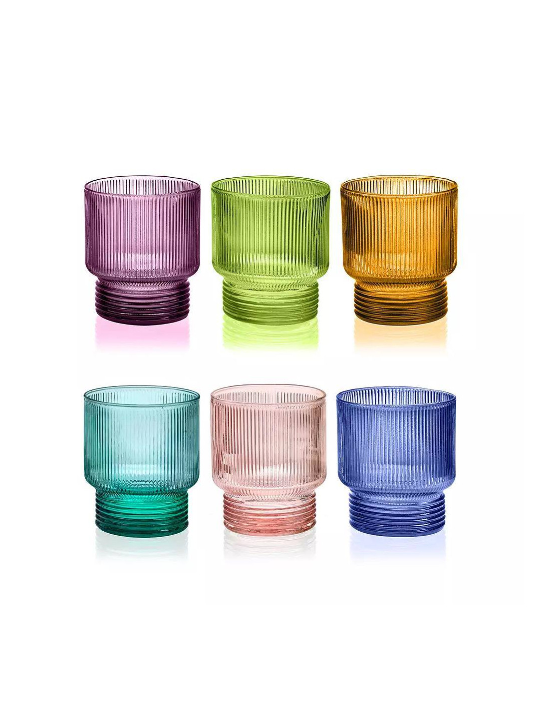 Set 6 bicchieri acqua impilabili, in vetro soffiato a bocca colorato nella