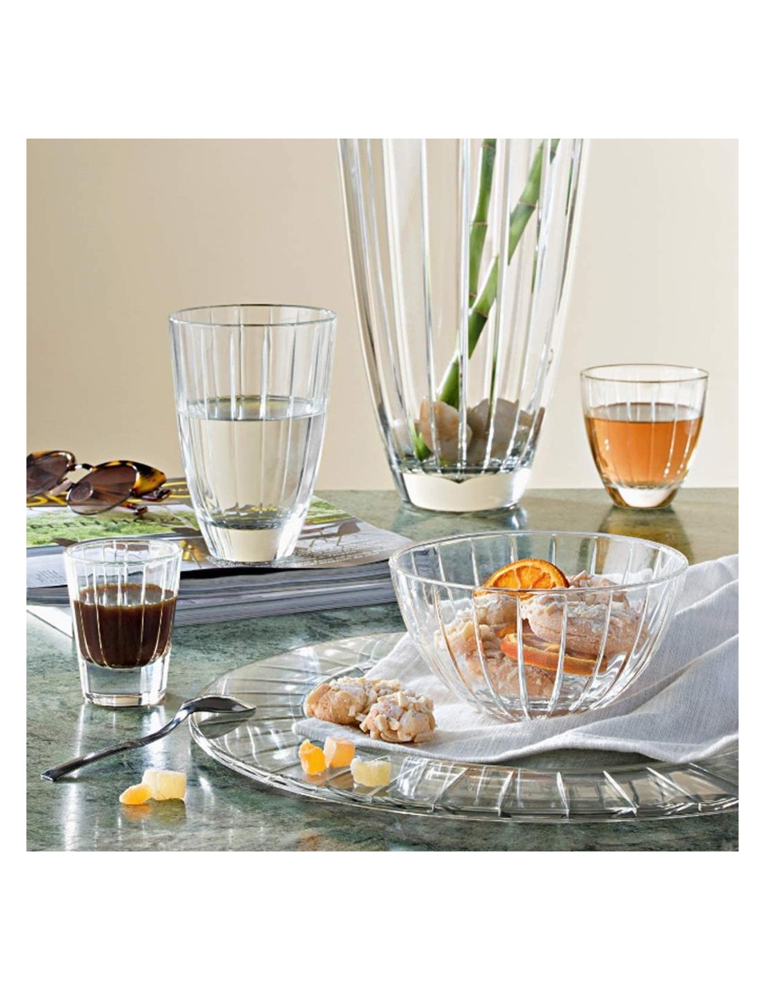 Delicate scalanature disegnano il vetro dalla base alla bocca,. Perfetto per