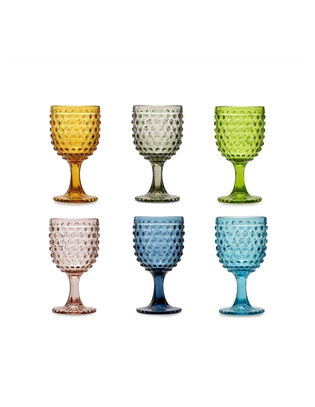 Set 6 calici vino colorati in pasta di vetro decorato da gocce esterne a