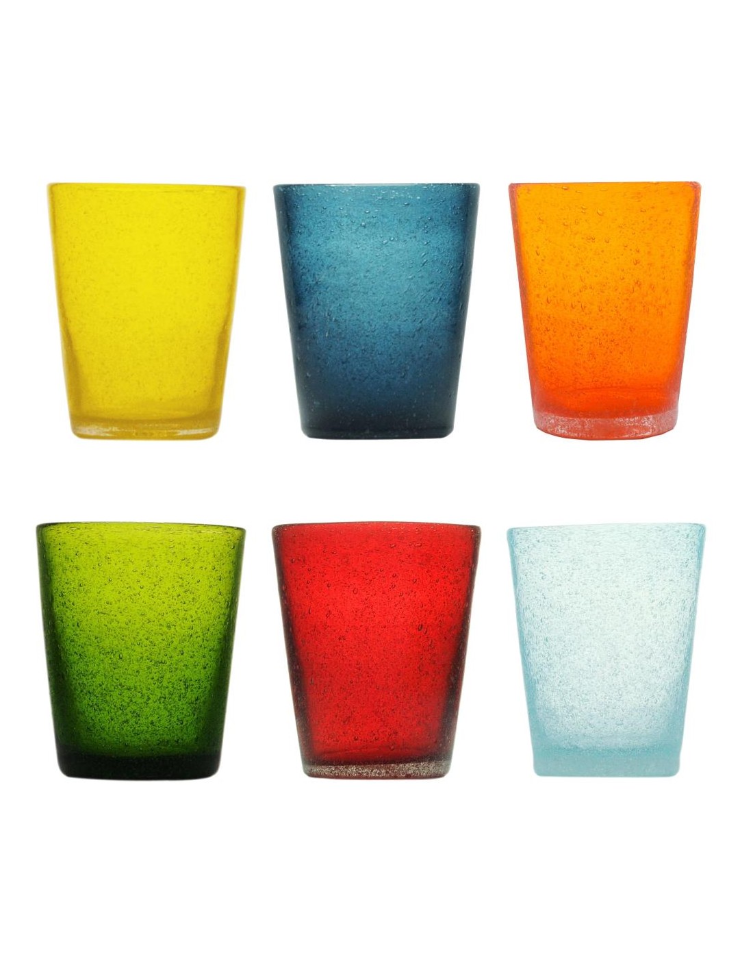 Set 6 bicchieri in vetro soffiato colorato nella massa.