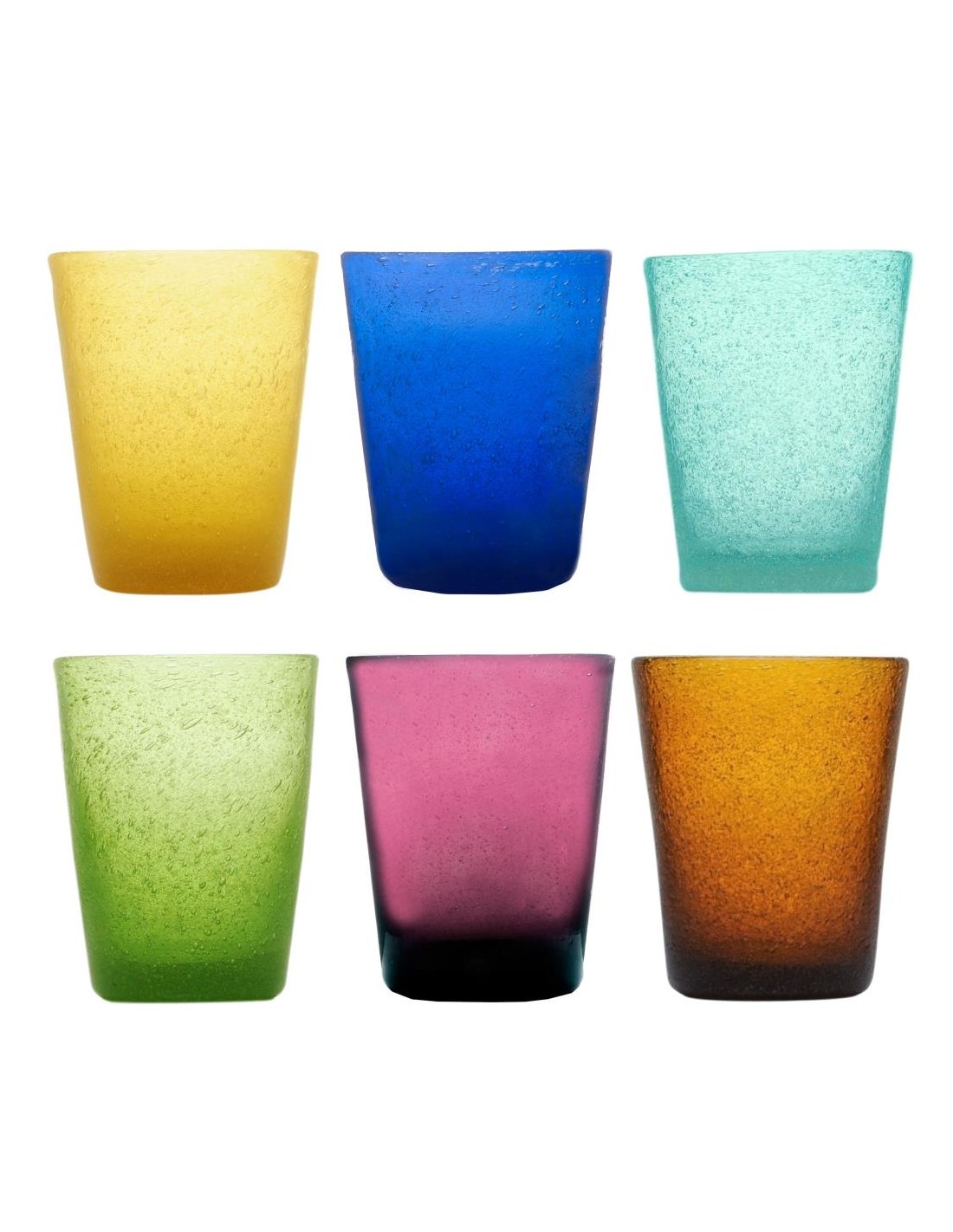 Set 6 bicchieri in vetro soffiato colorato nella massa.