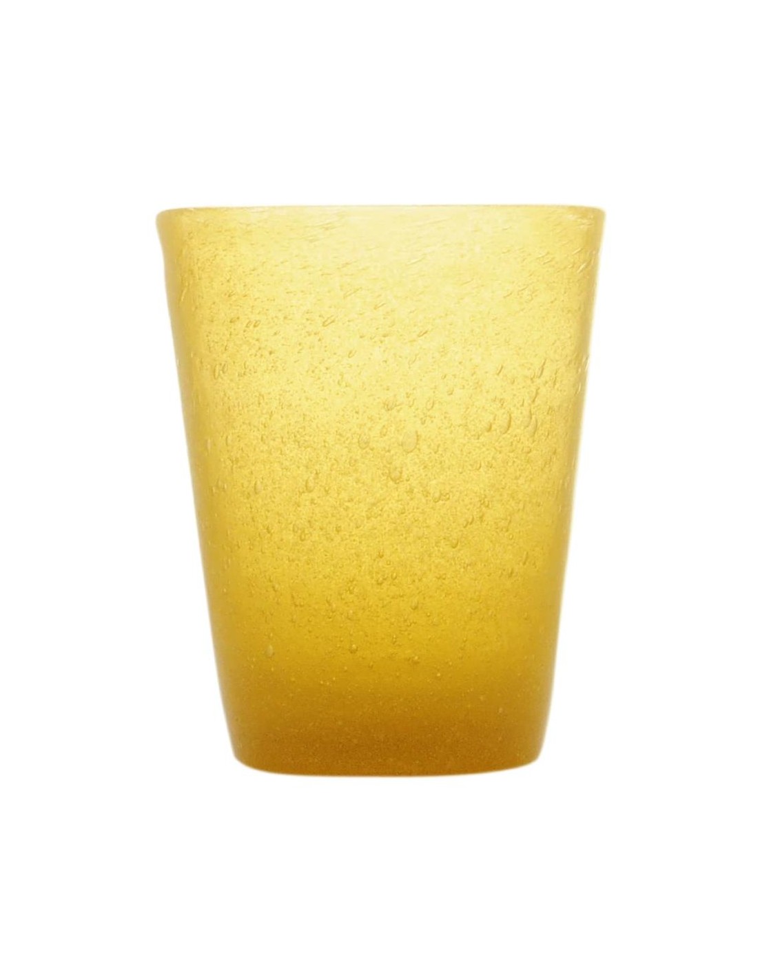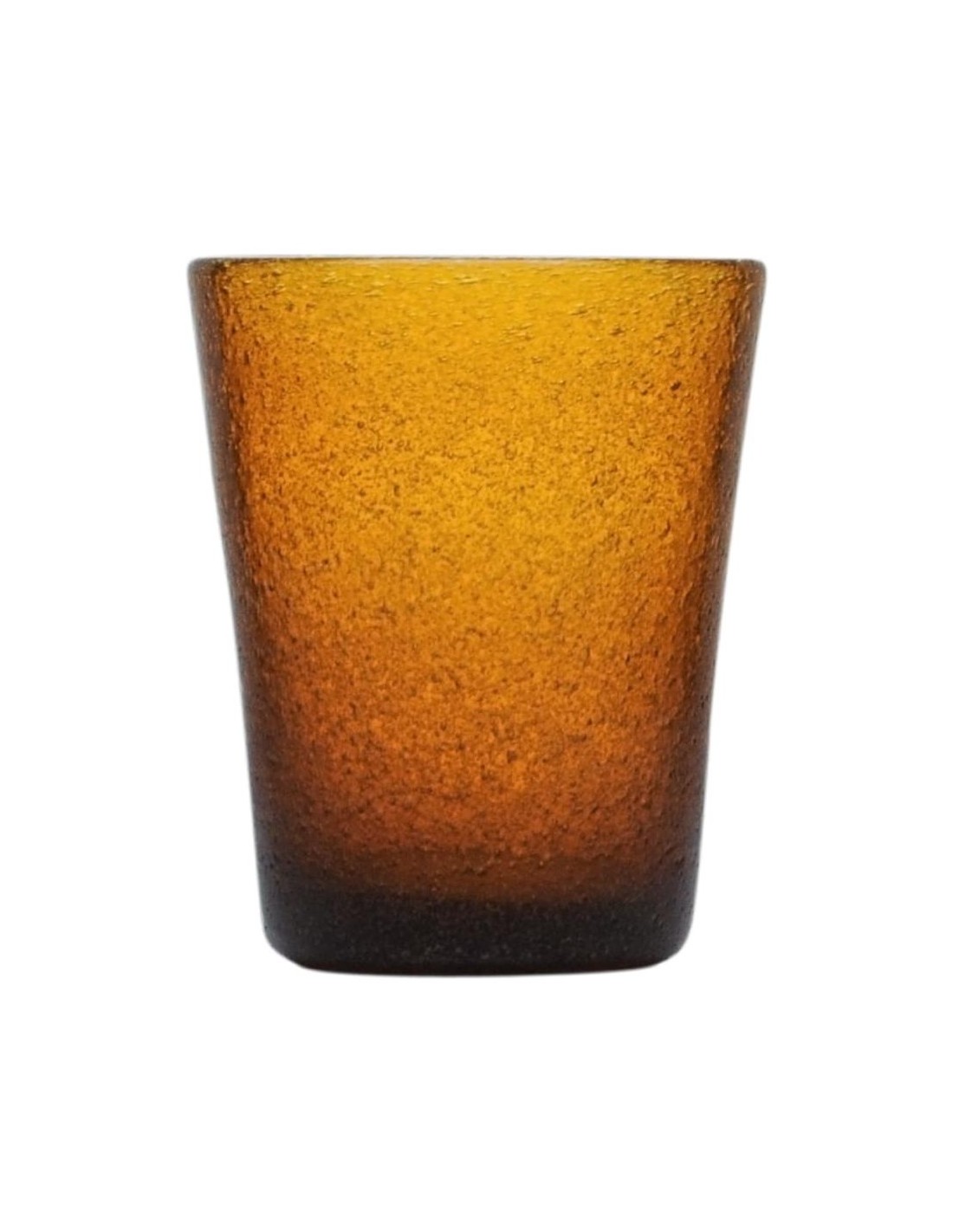 Vetro soffiato a bocca e lavorato a mano dando una caratteristica unica ad ogni singolo pezzo, abbellito da bollicine all'interno del vetro.