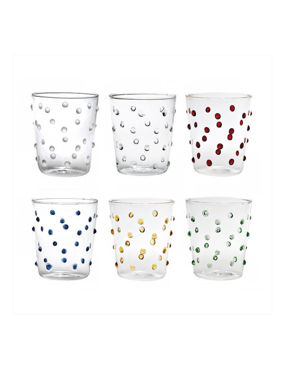 superficie del bicchiere è impreziosita da piccoli elementi colorati in rilievo,