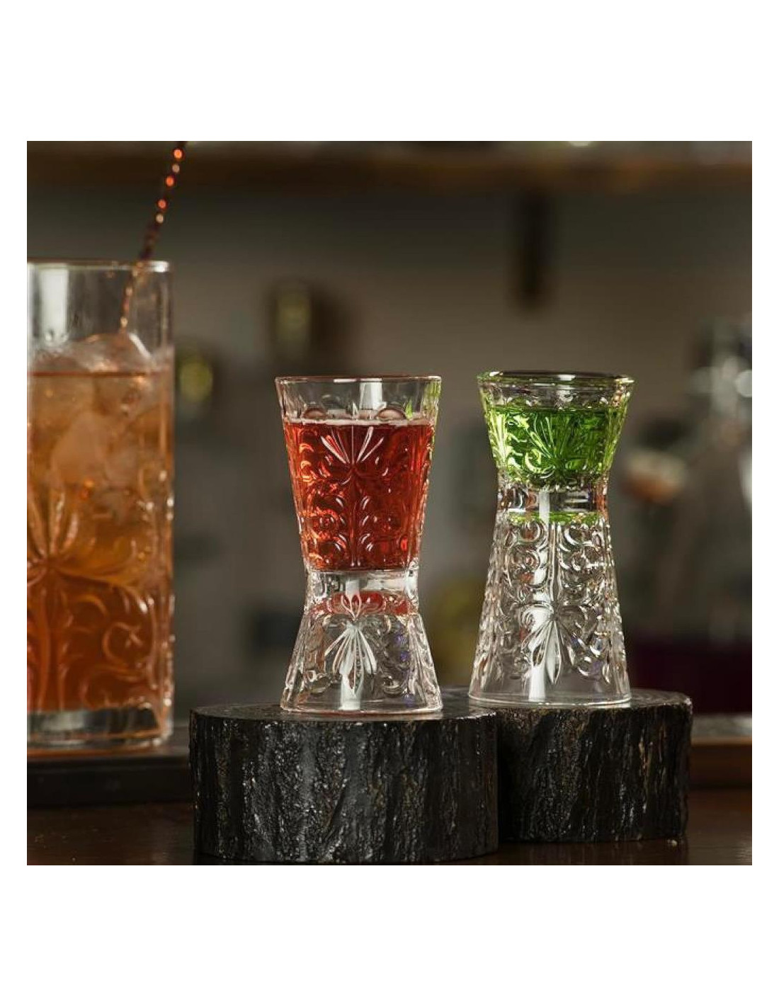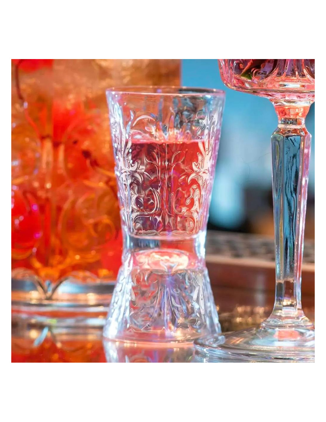 Unico nel suo genere, due bicchieri e un jigger in un