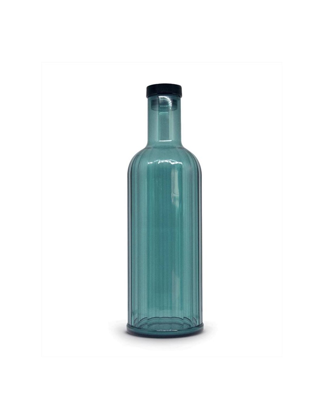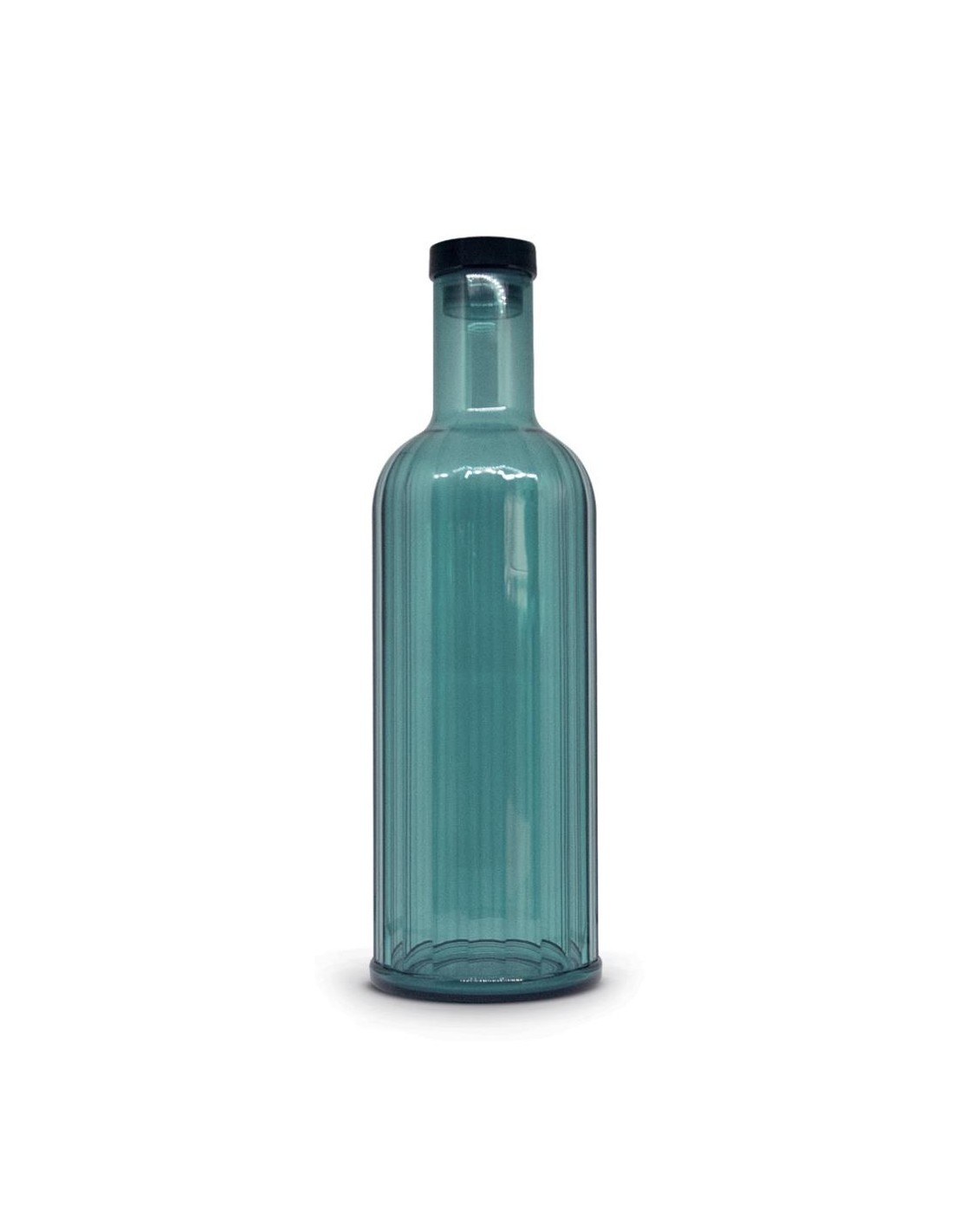 Bottiglia in acrilico colorata e tappo ermetico, con decorazione verticale  a rilievo effetto vetro.