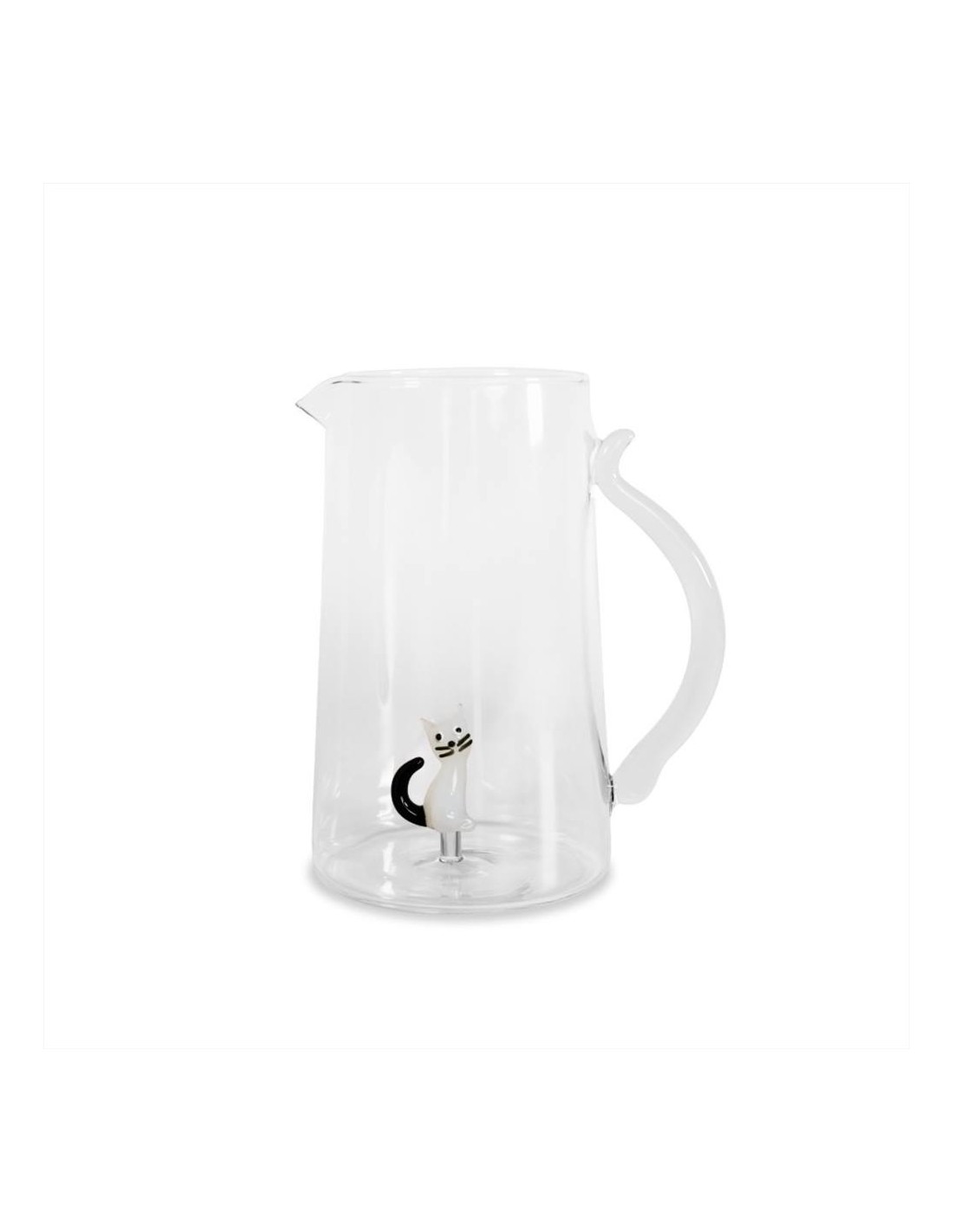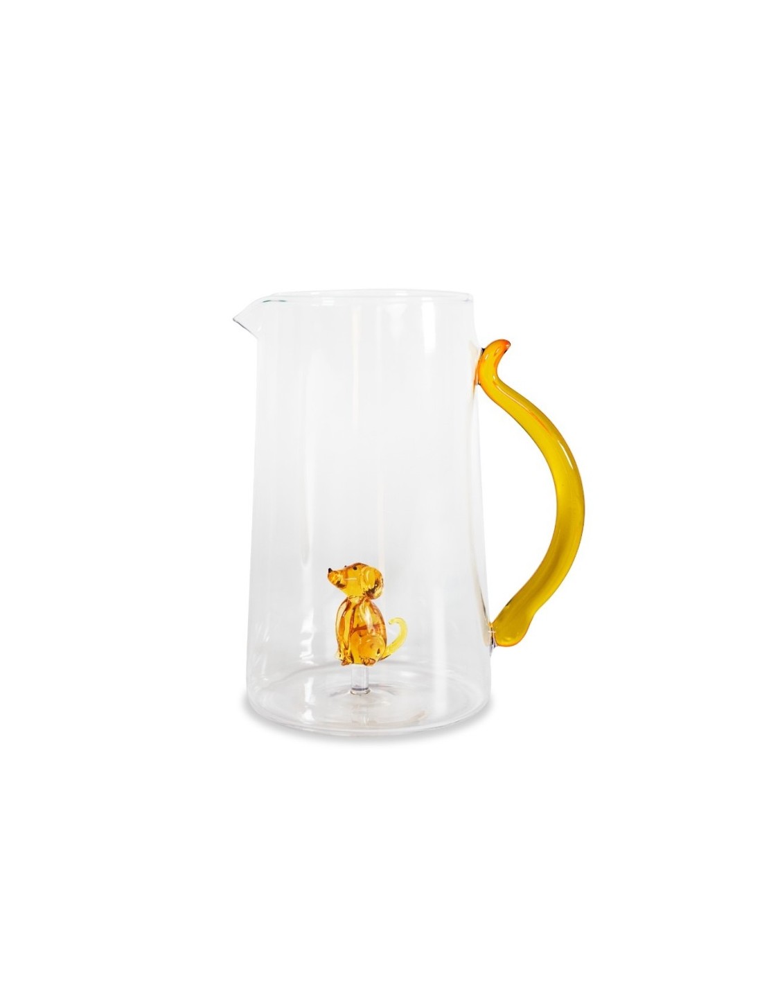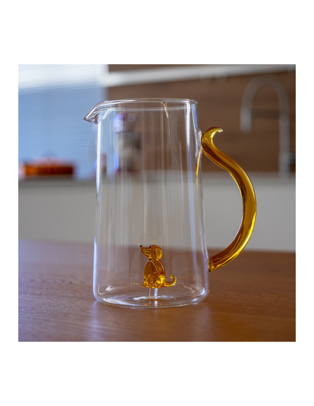 Caraffa in vetro borosilicato con decoro in vetro colorato all’interno. Ogni soggetto è realizzato artigianalmentein vetro soffiato rendendo ogni singola caraffa un pezzo unico.