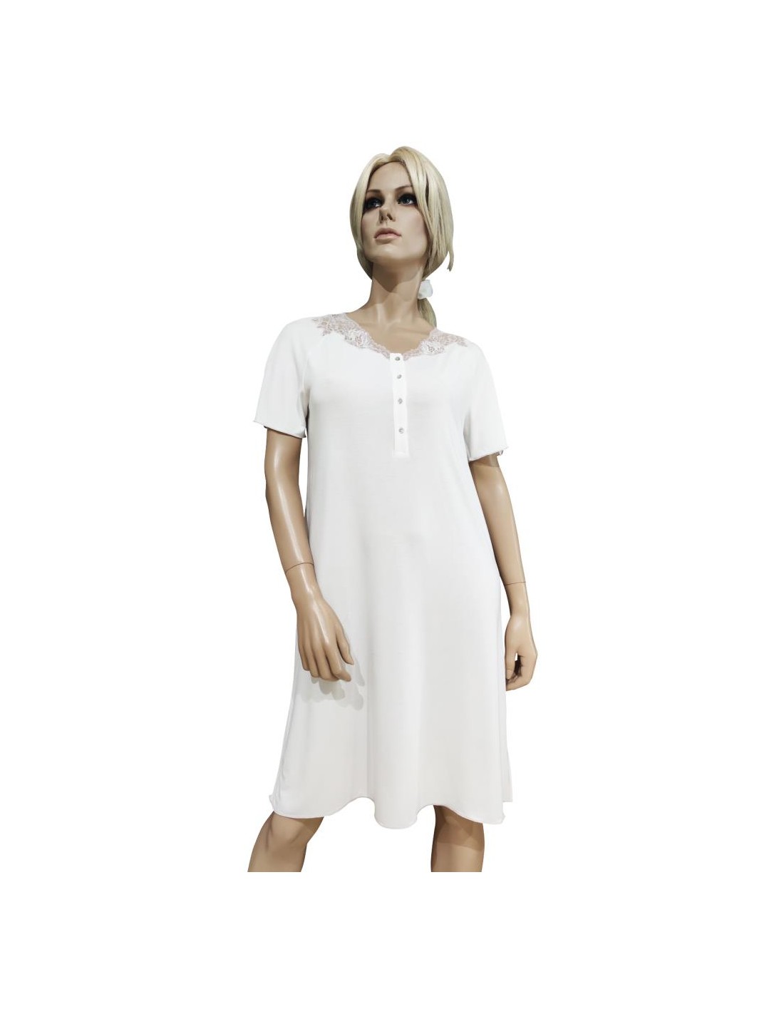 CAMICIA DA NOTTE DONNA ESTIVA IN TESSUTO MICROMODAL E PIZZO