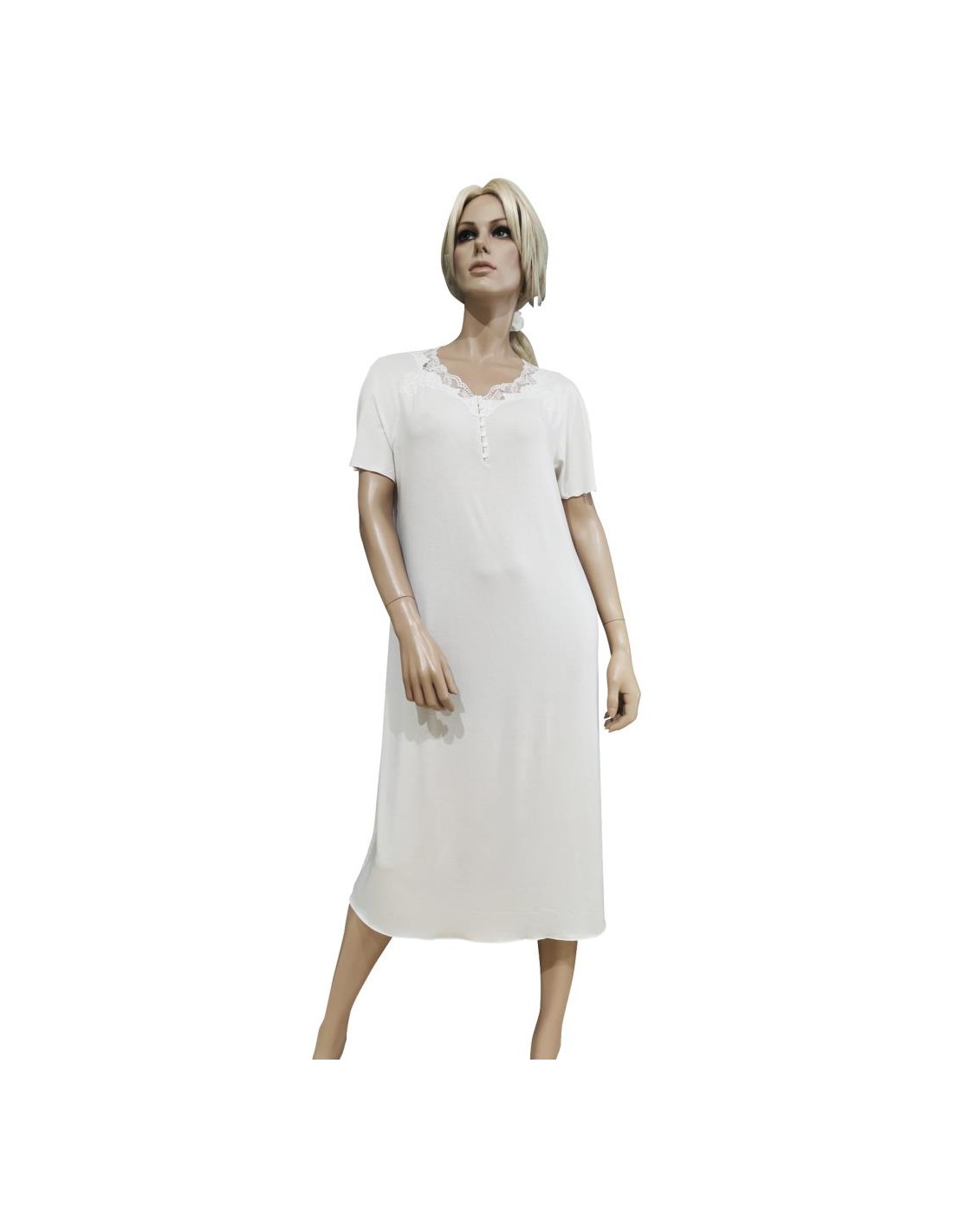 CAMICIA DA NOTTE DONNA ESTIVA IN TESSUTO MICROMODAL E PIZZO