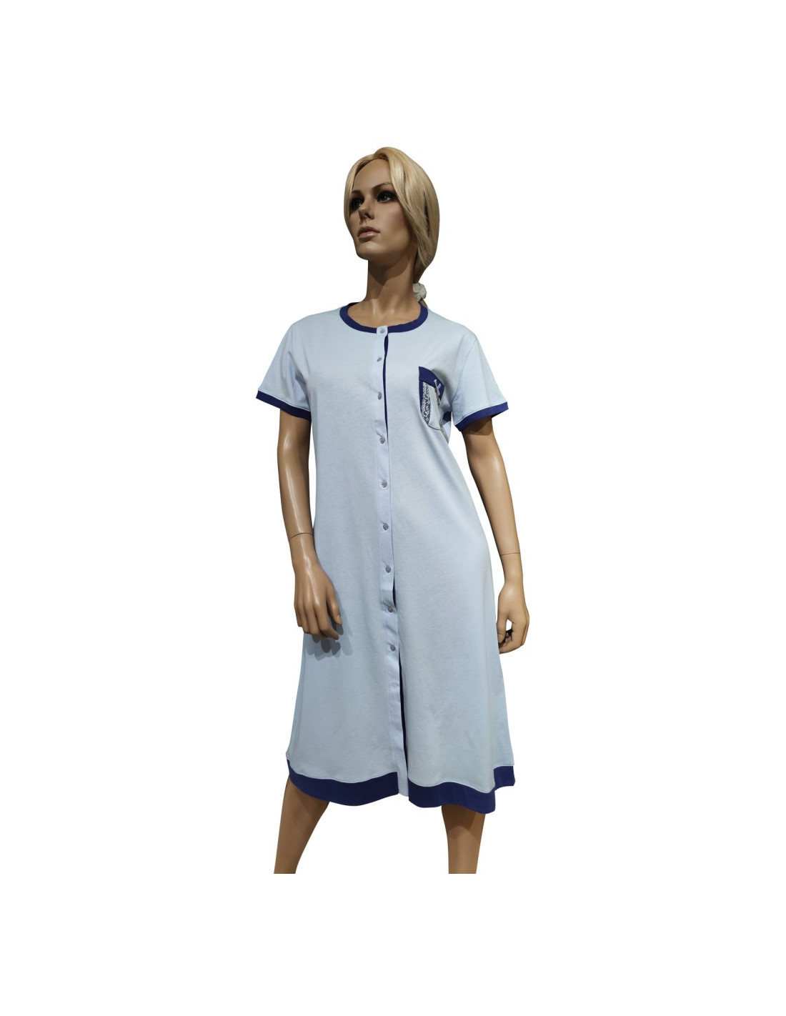 Camicia da notte Donna estiva in puro cotone, chiusura a bottoni e mezza manica.
