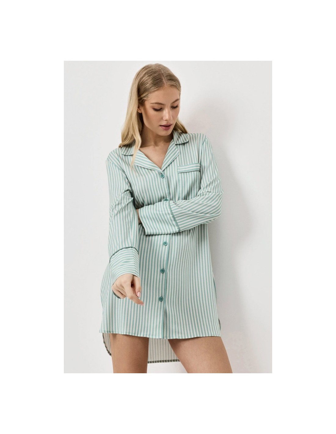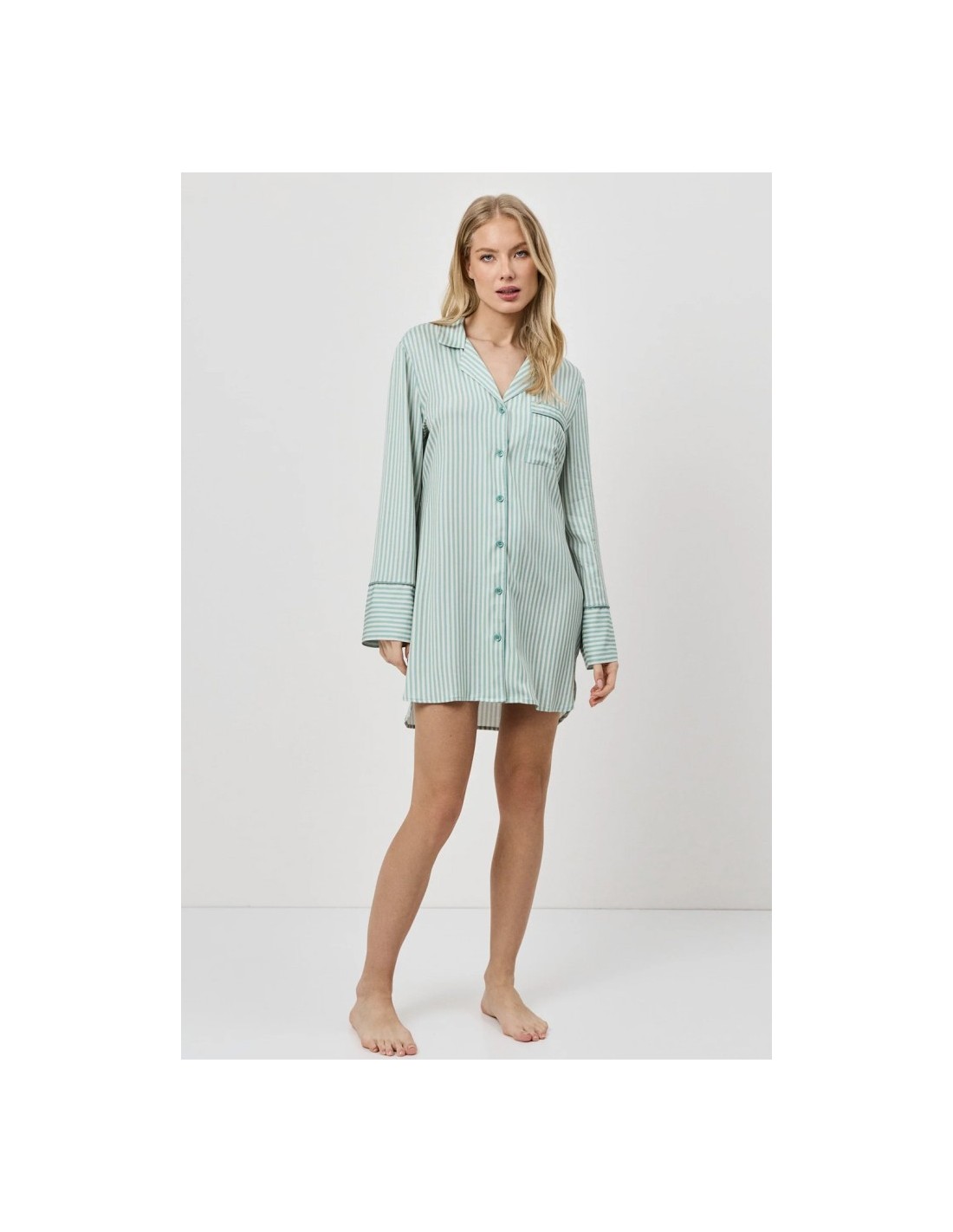 ARUELLE CAMICIA DA NOTTE DONNA ABBOTTONATA A MANICA LUNGA - MOSS