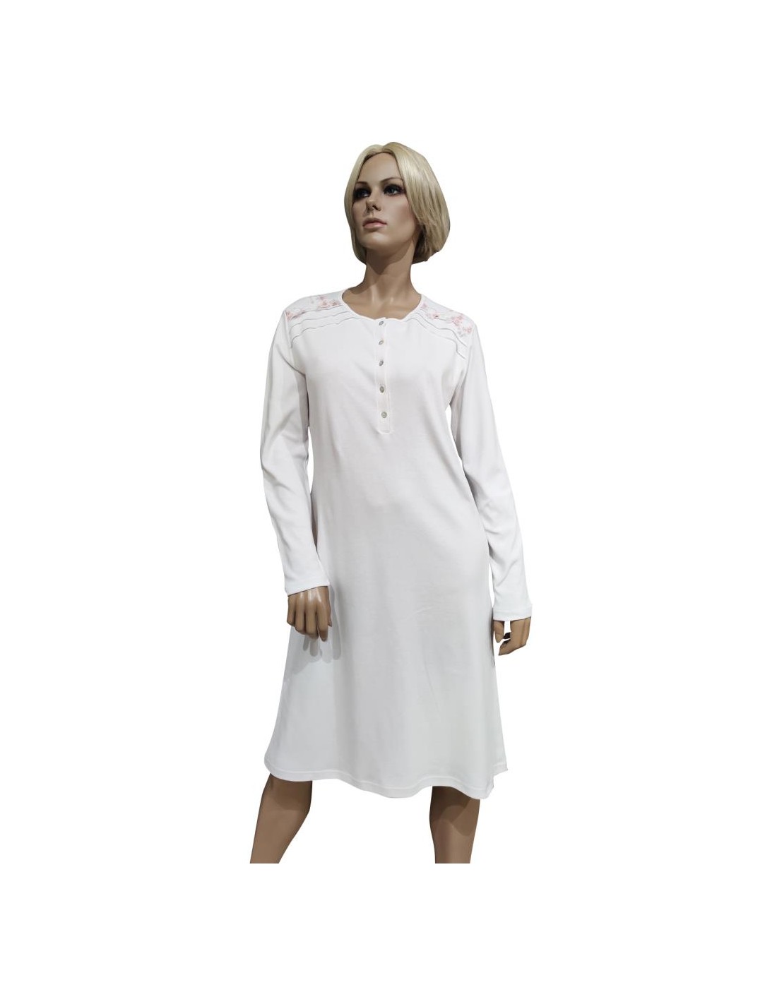 Camicia da notte Donna invernale in caldo Cotone Interlock, rifinita sulle
