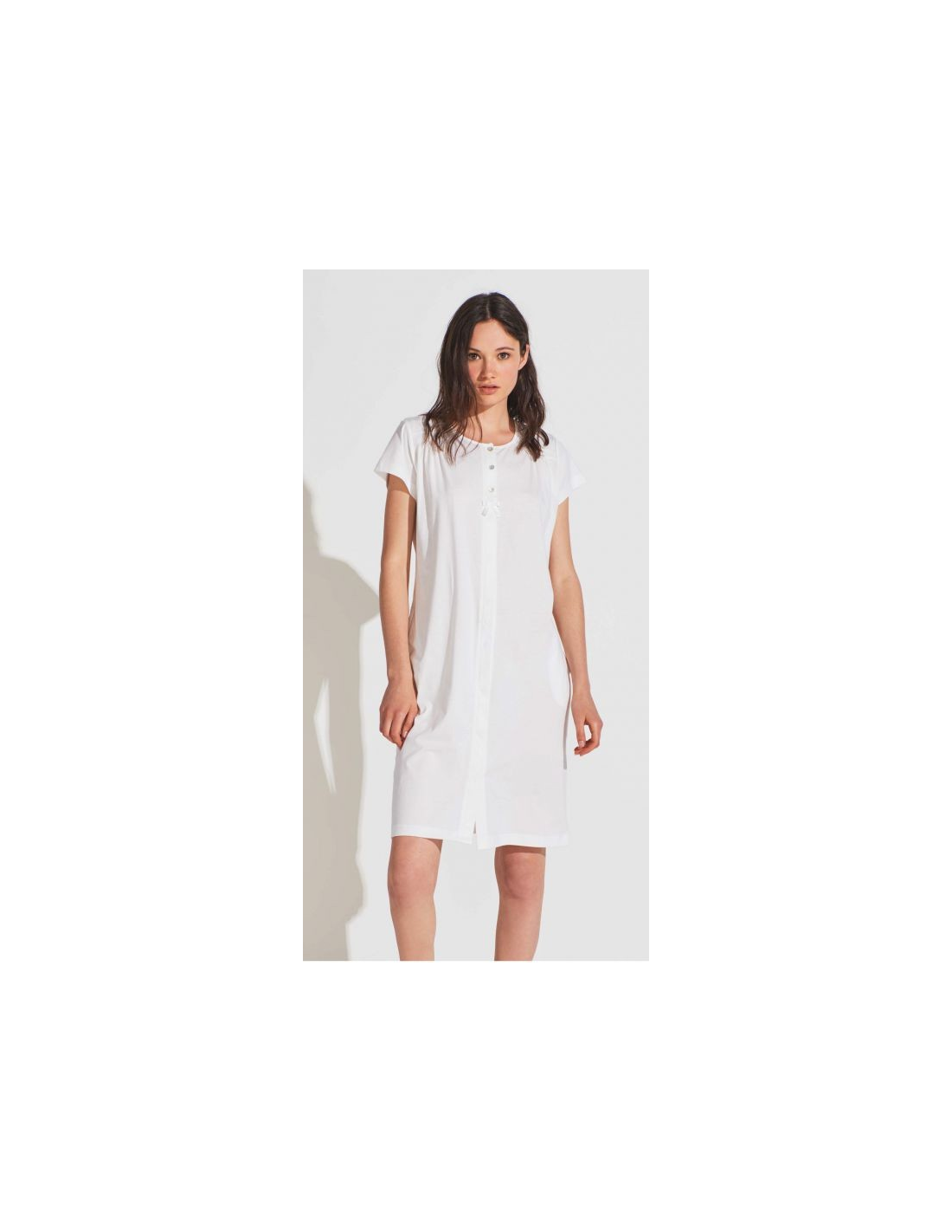 Camicia da notte donna estiva manica corta a serafino 3 bottoni con
