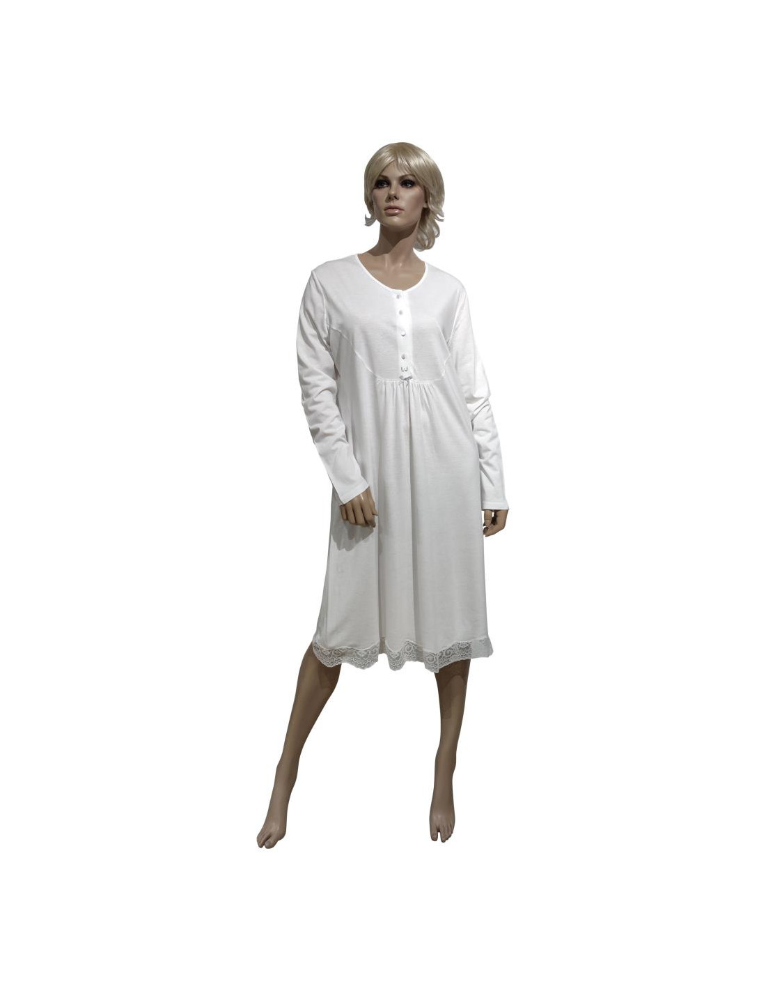 manica lunga, collo a serafino 5 bottoni e rifinita con pizzo.