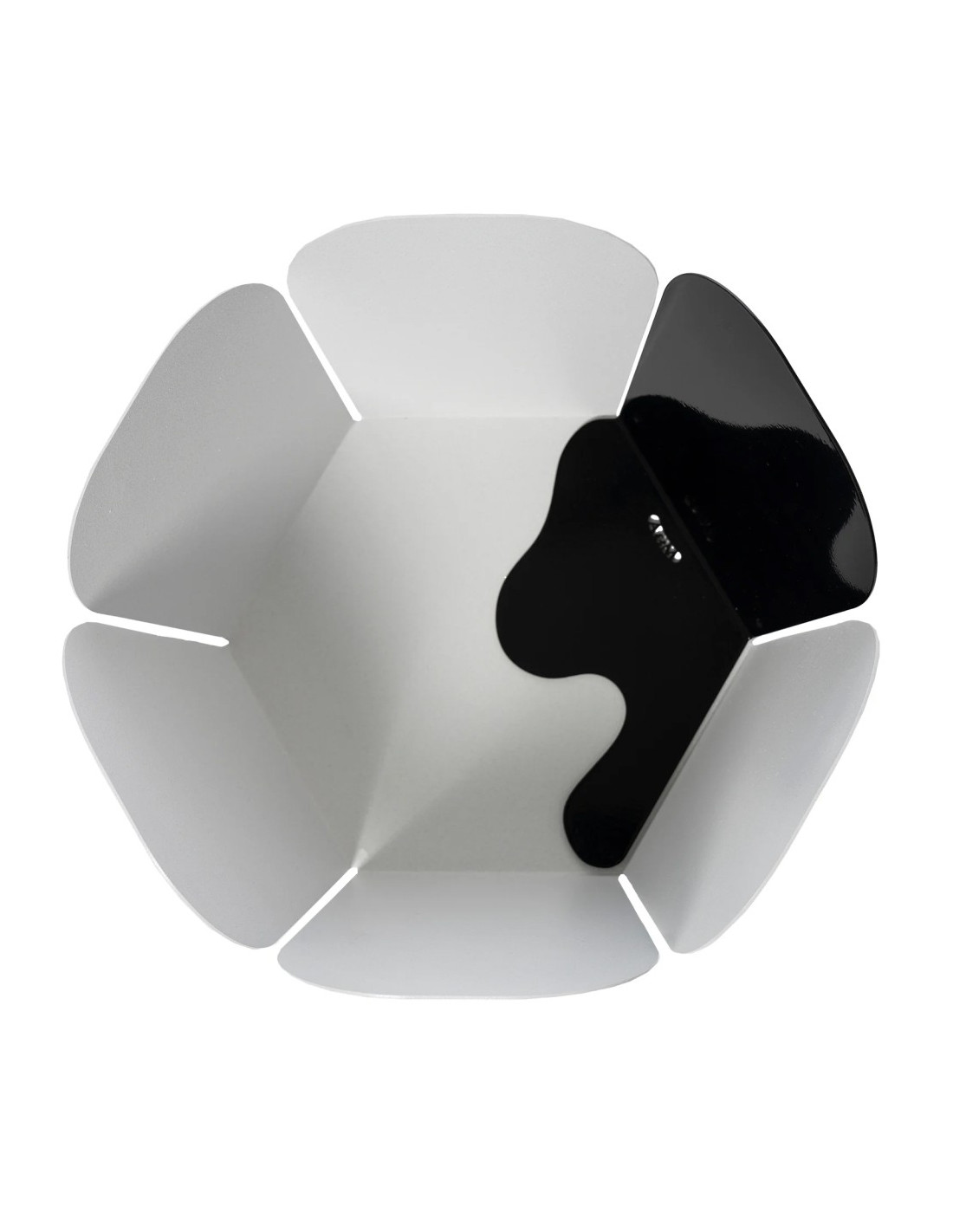 La caratteristica principale del "Centrotavola Fluid" è la presenza di un lato colorato diversamente rispetto al resto, con il colore che si estende "a macchia" sulla base ricordando l'effetto della vernice che cola.
