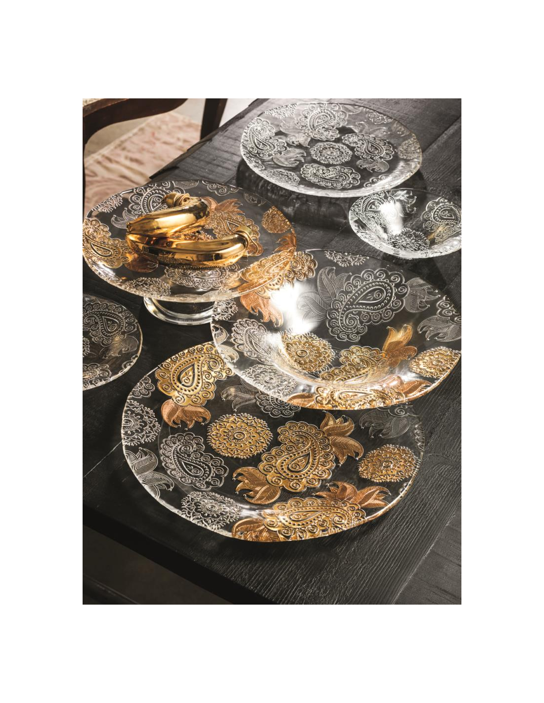 CENTROTAVOLA IN VETRO TRASPARENTE DECORO ORO
