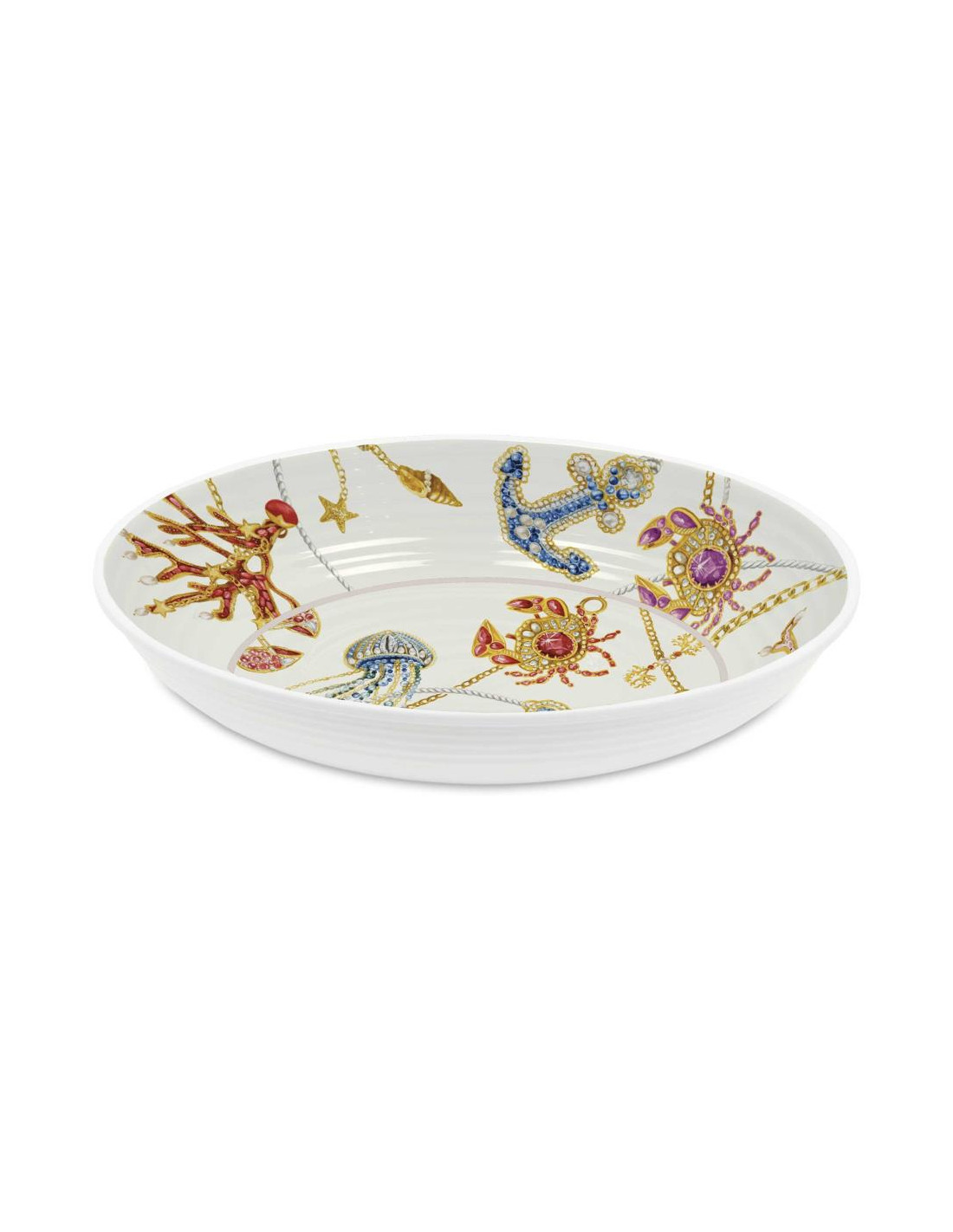 gioielli, perle e monili si intrecciano e si trasformano in coralli, pesci e