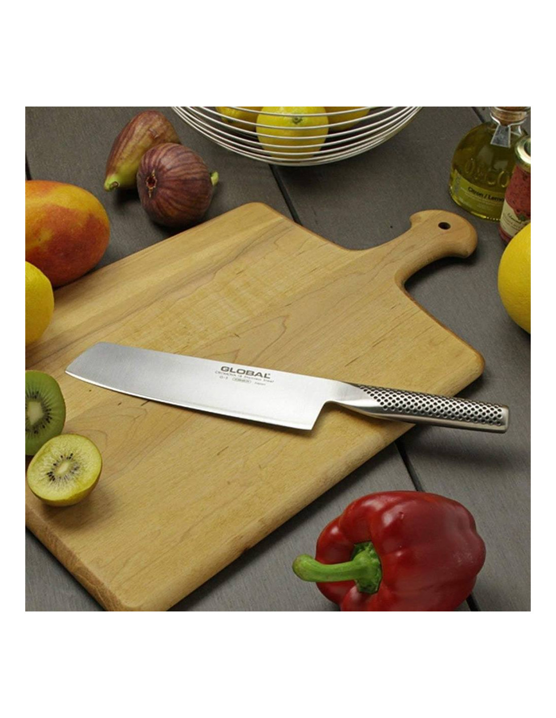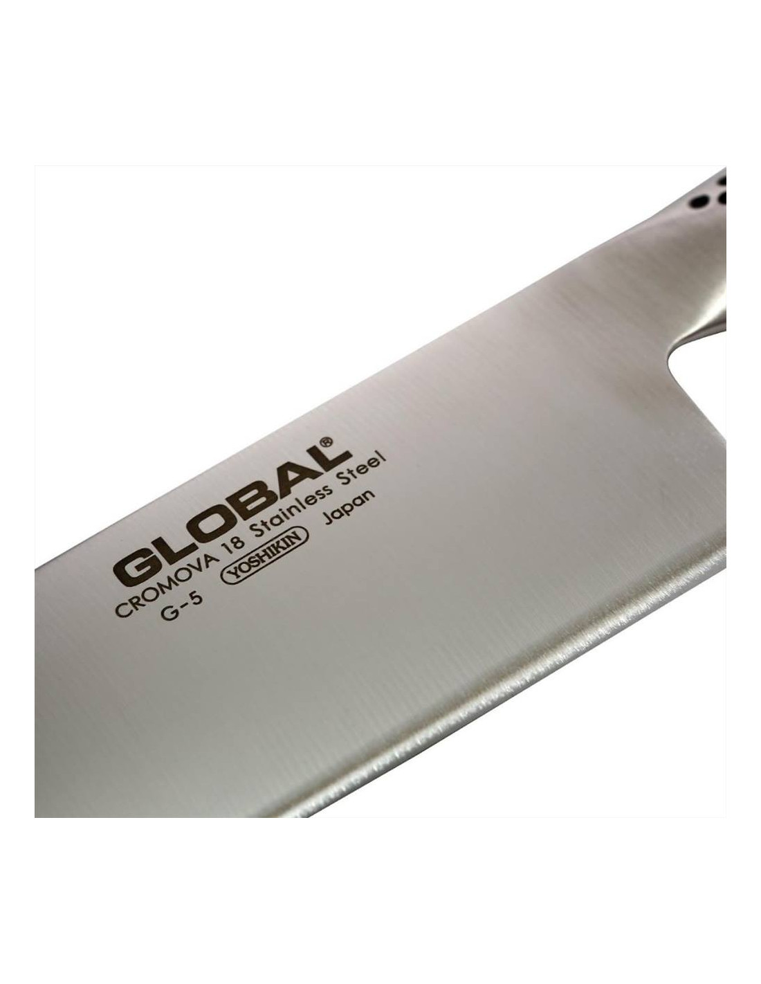 Il coltello orientale Global G-05, con ampia lama affilata, liscia e lunga 18