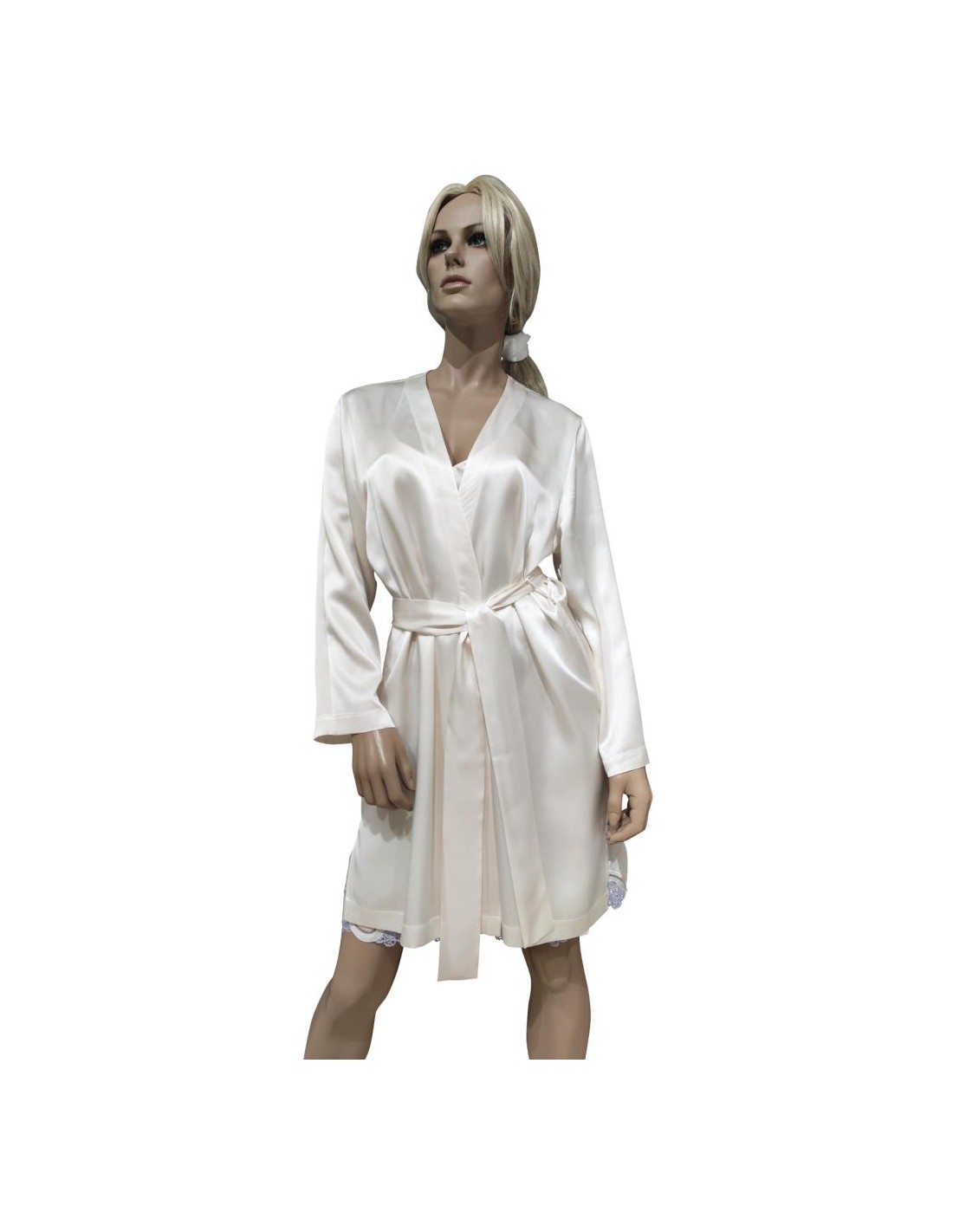 COMPLETO LINGERIE SPOSA VESTAGLIA E CAMICIA DA NOTTE IN PURA SETA CON PIZZO