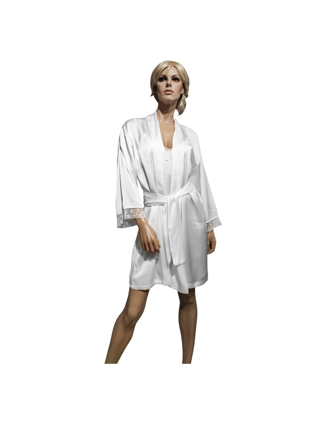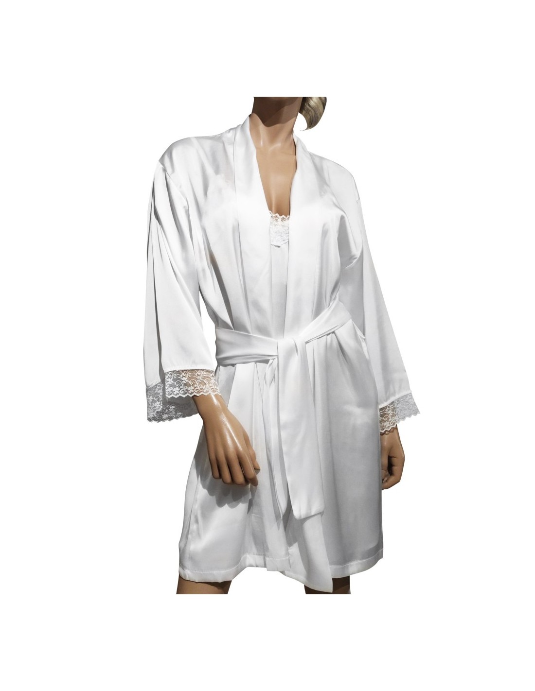Completo lingerie donna in Raso. Vestaglia corta kimono rifinita