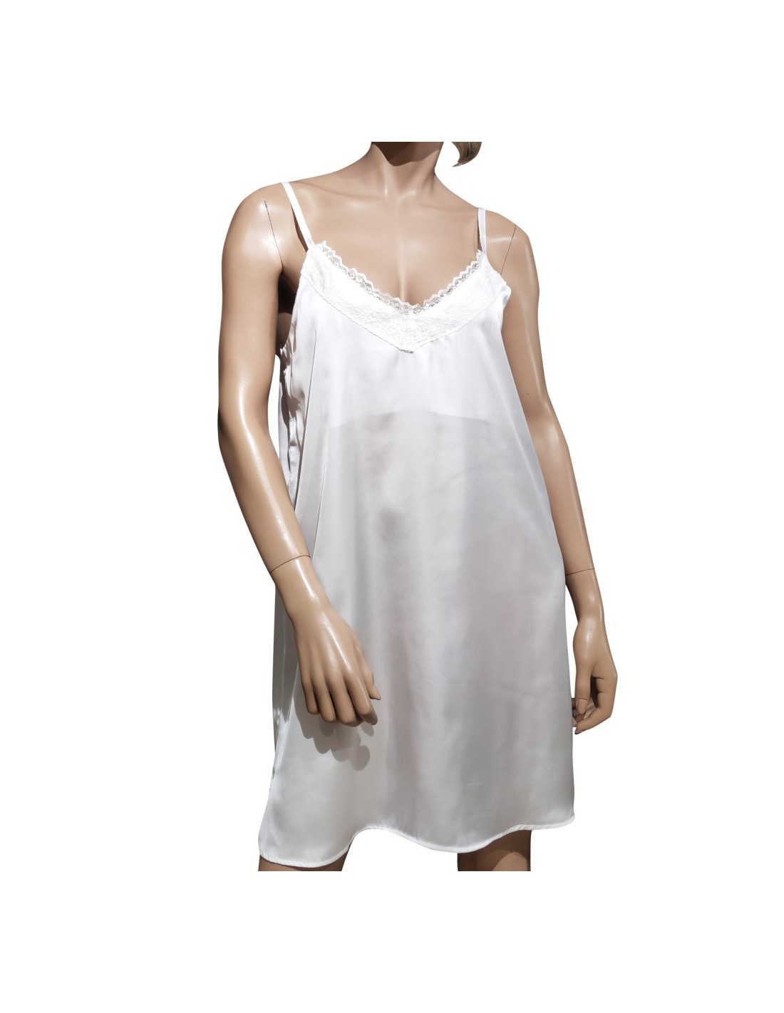 con pizzo tono su tono applicato sui polsi. Camicia da notte con