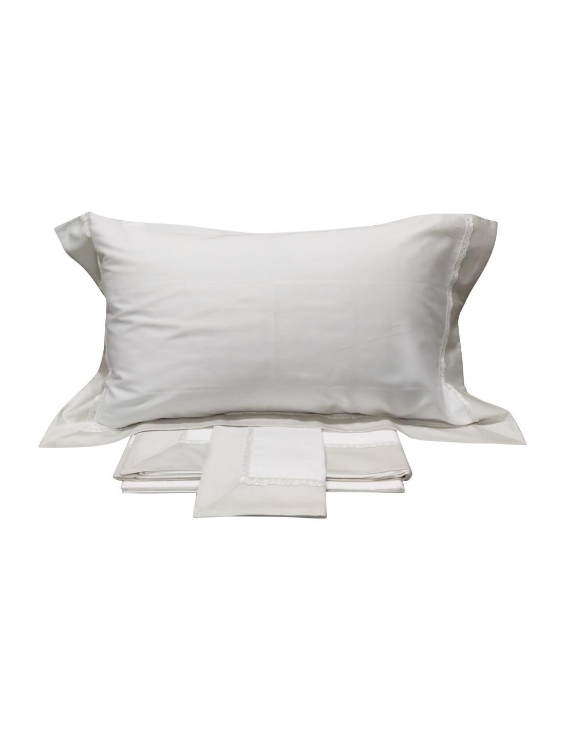 di puro cotone rifinito con bordo e pizzo, lenzuolo di sotto teso e 2 federe a 3