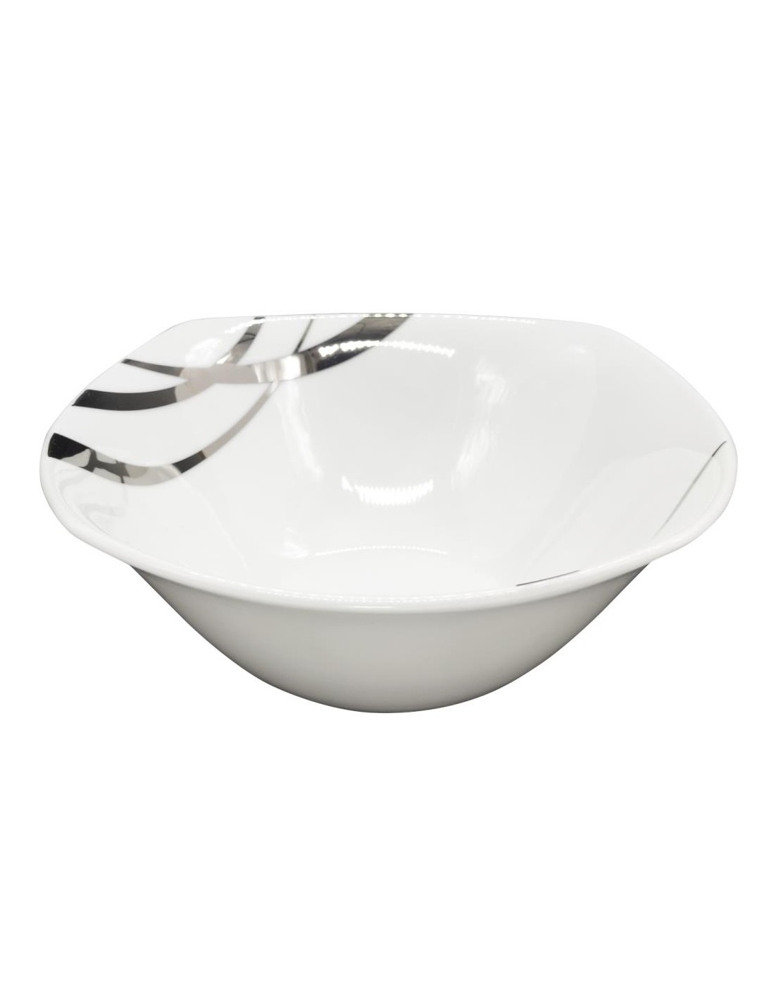 Insalatiera elegante in porcellana bianca decorata da linee platino.