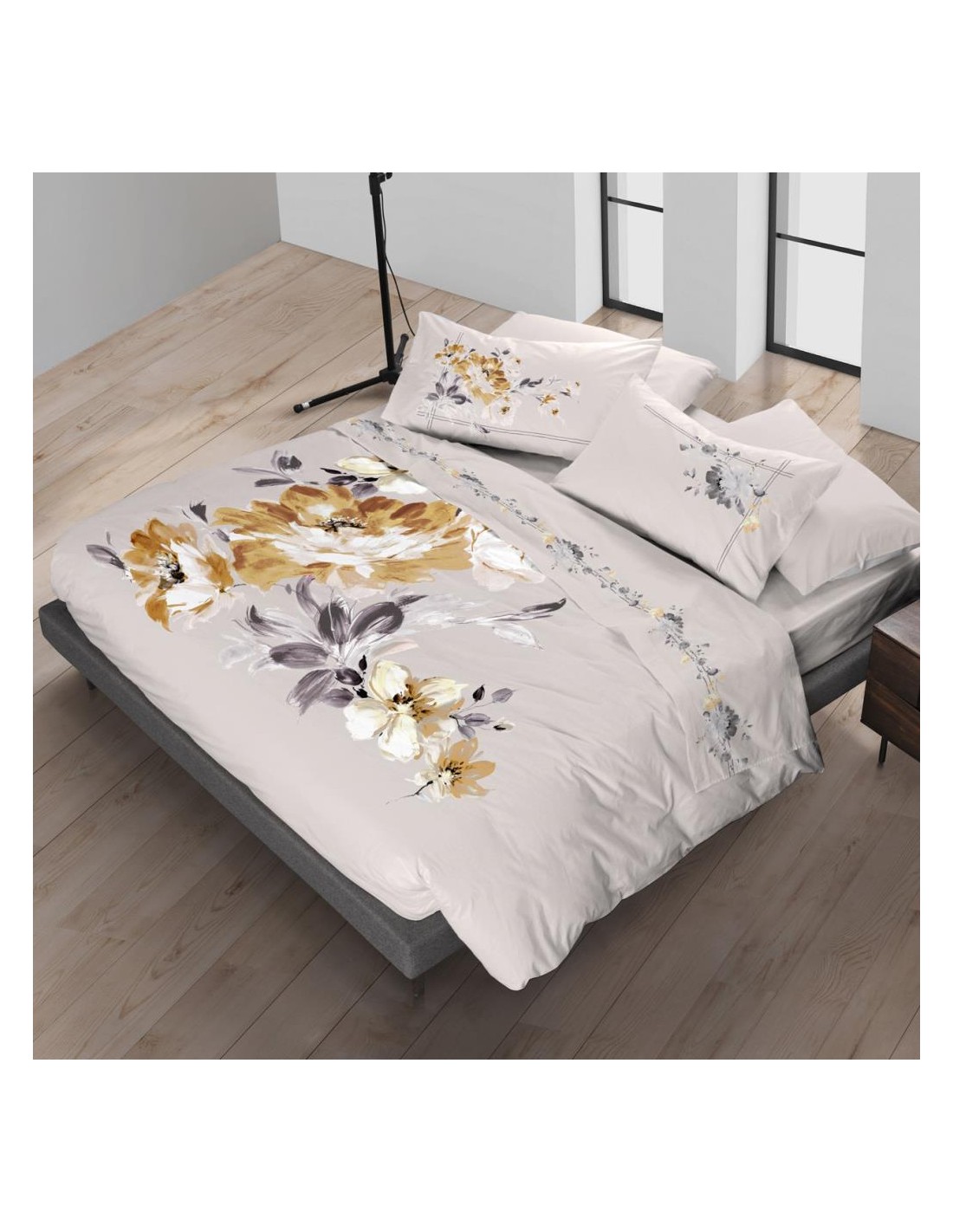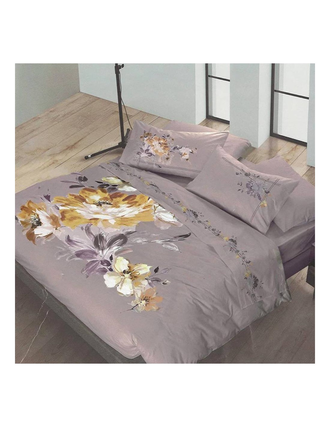 PARURE COPRIPIUMINO 2 PIAZZE IN RASO 100% COTONE FLOREALE