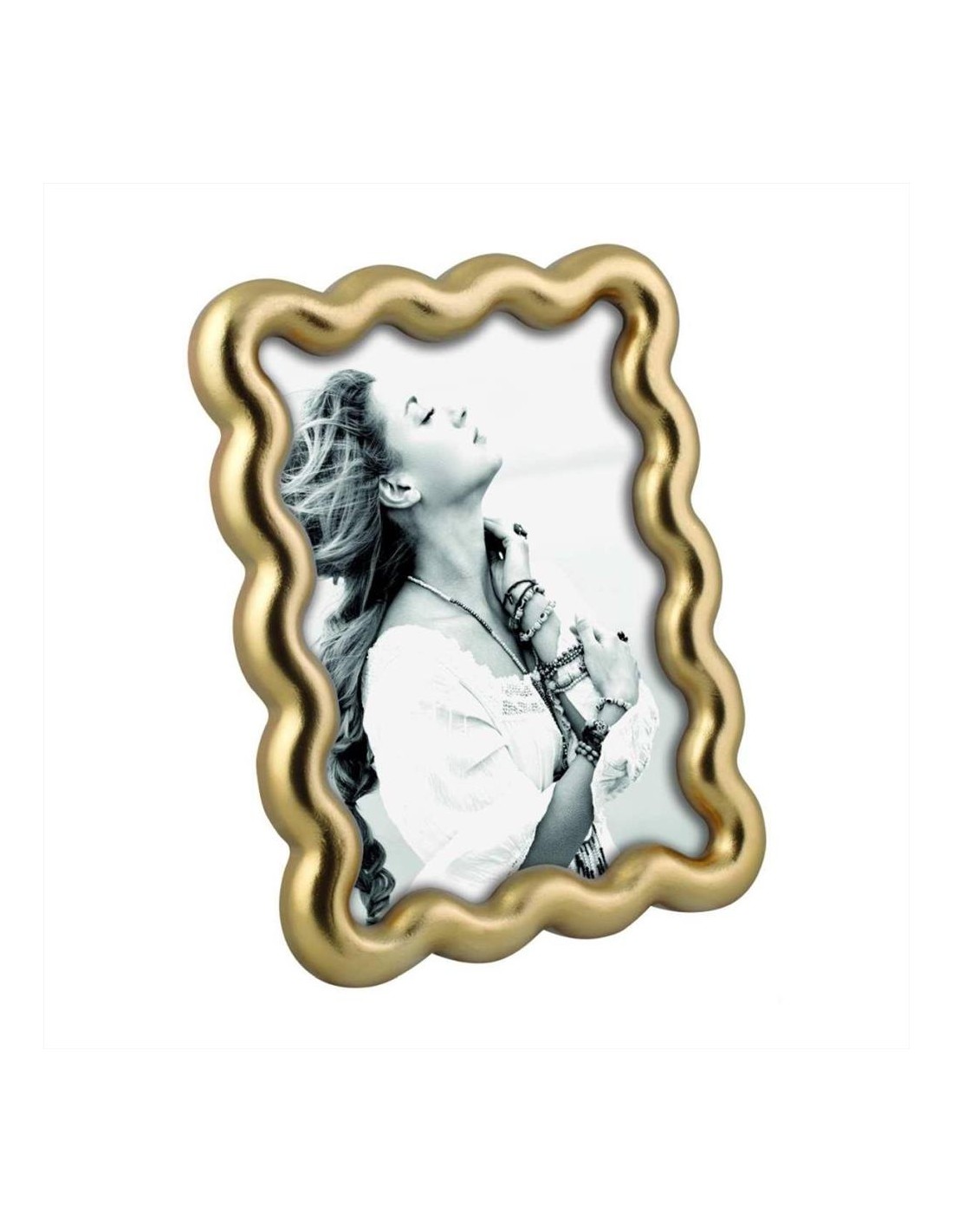 Cornice portafoto in mdf, con effetto andulato color oro.