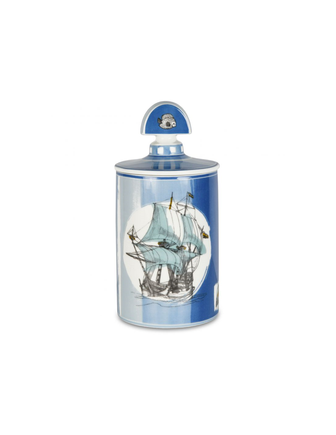 Barattolo Maxi in porcellana finemente decorata a tema marino, con coperchio ermetico