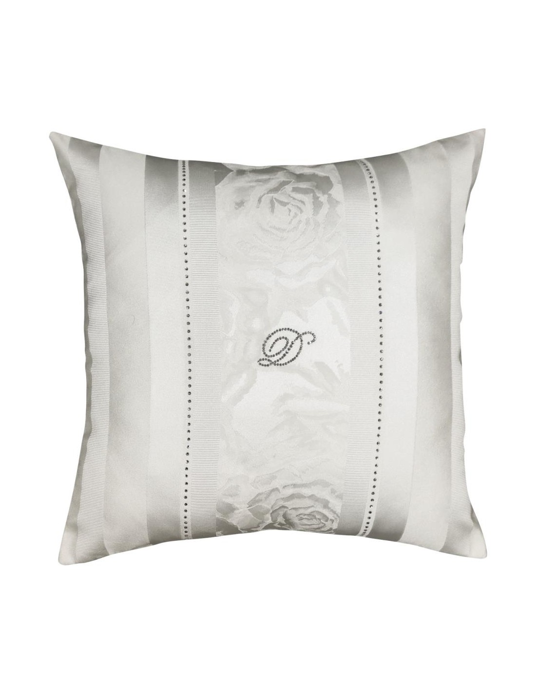 Cuscino arredo David in tessuto jacquard floreale con logo "D" in swarovski.