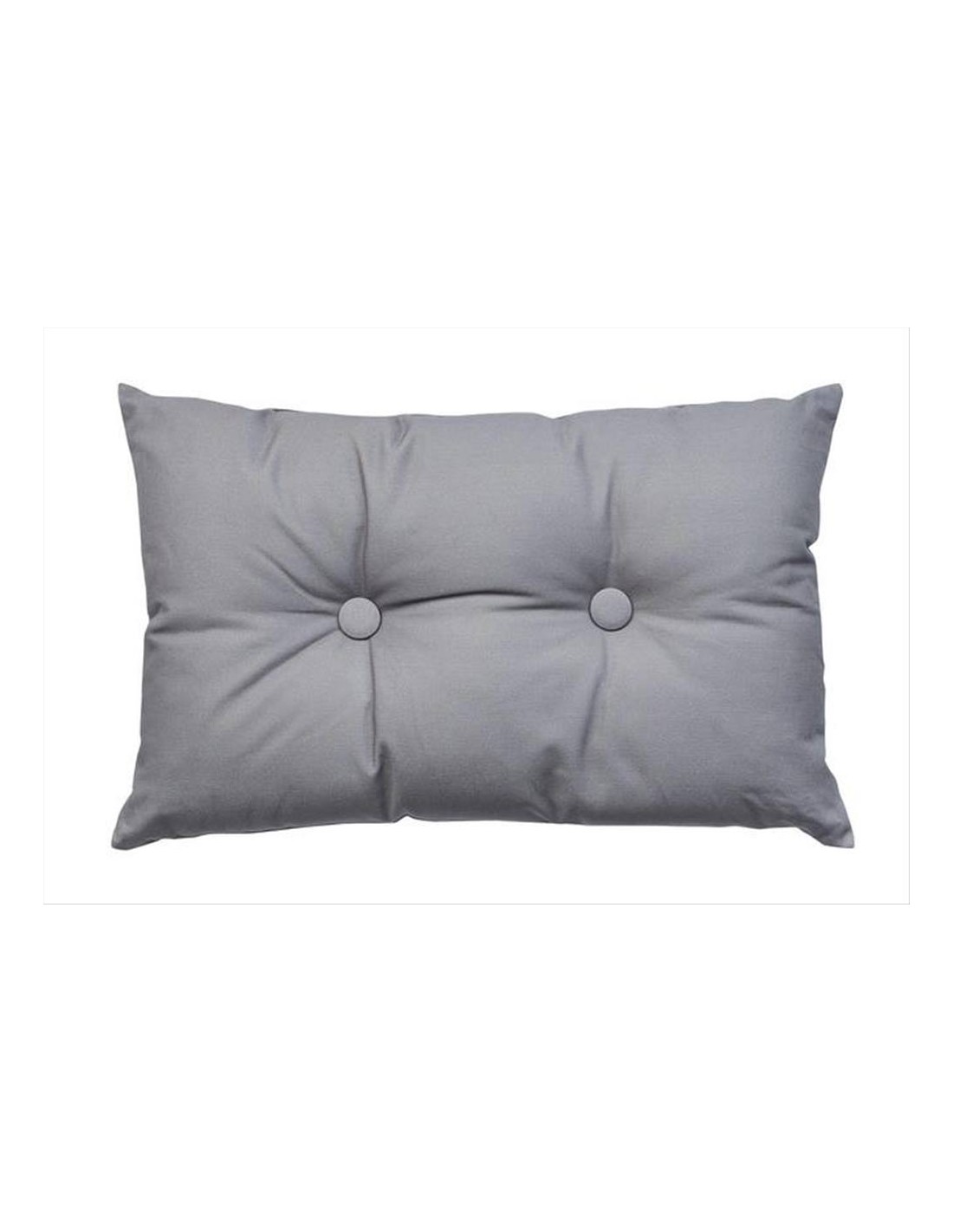 Il cuscino ha un aspetto giocoso grazie ai bottoni e alle pieghe al centro.
