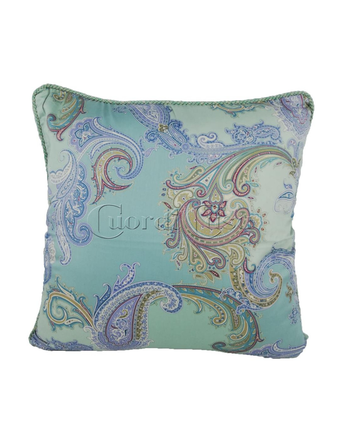 Cuscino arredo Etro in raso di cotone bordato con tubolare, fantasia