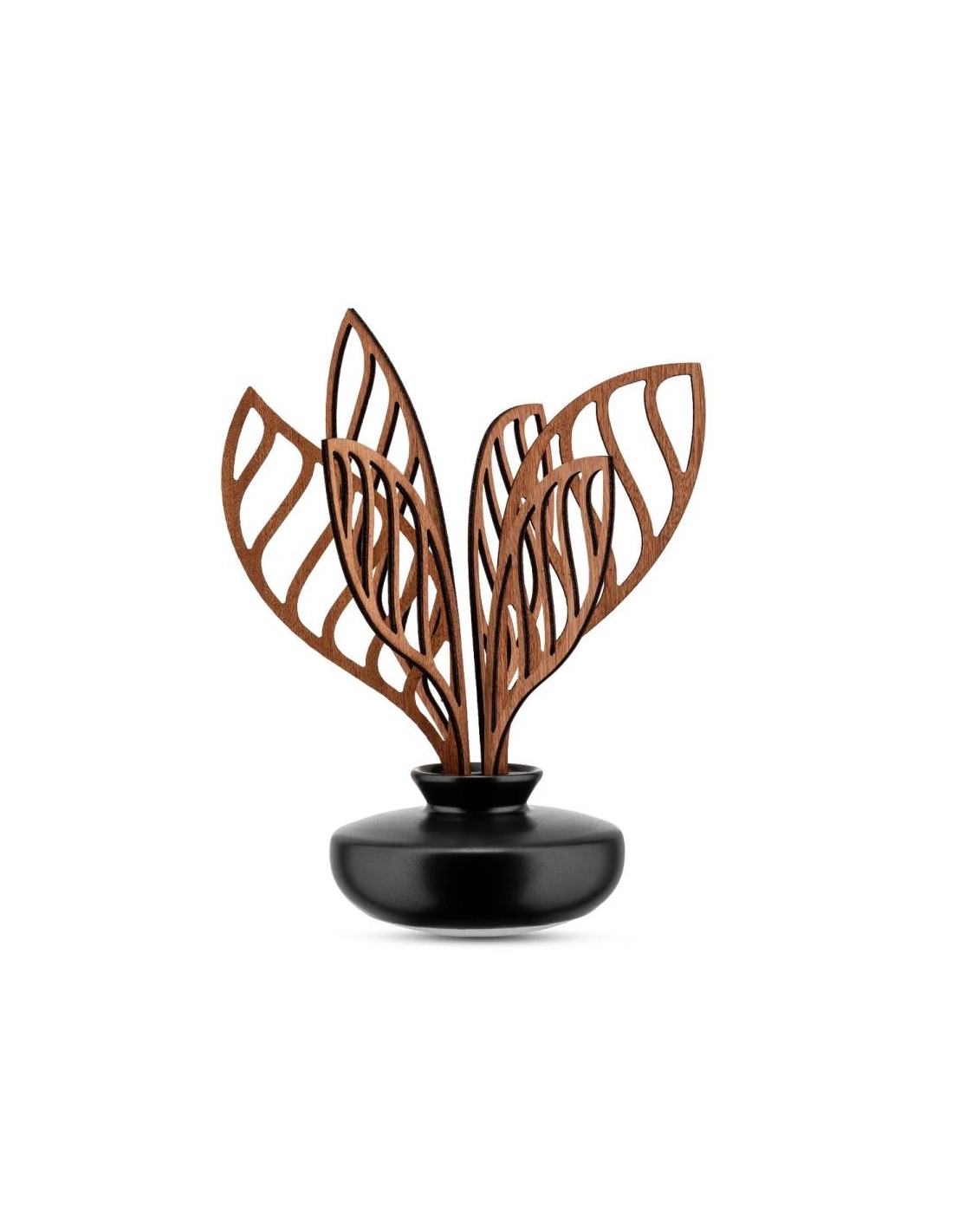 Un diffusore di fragranze per ambiente inedito e sofisticato, che sostituisce i comuni bastoncini con eleganti foglie stilizzate prodotte in legno di mogano. Un modo originale per diffondere i profumi
