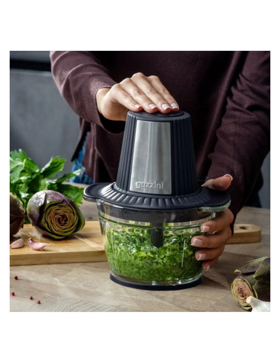 Il tritatutto Guzzini in materiale bio-based, con bowl in vetro da 1L e lama inox, unisce estetica e funzionalità. Trita, Mescola e sminuzza in un solo gesto ogni ingrediente con precisione, nelle tue preparazioni quotidiane.
