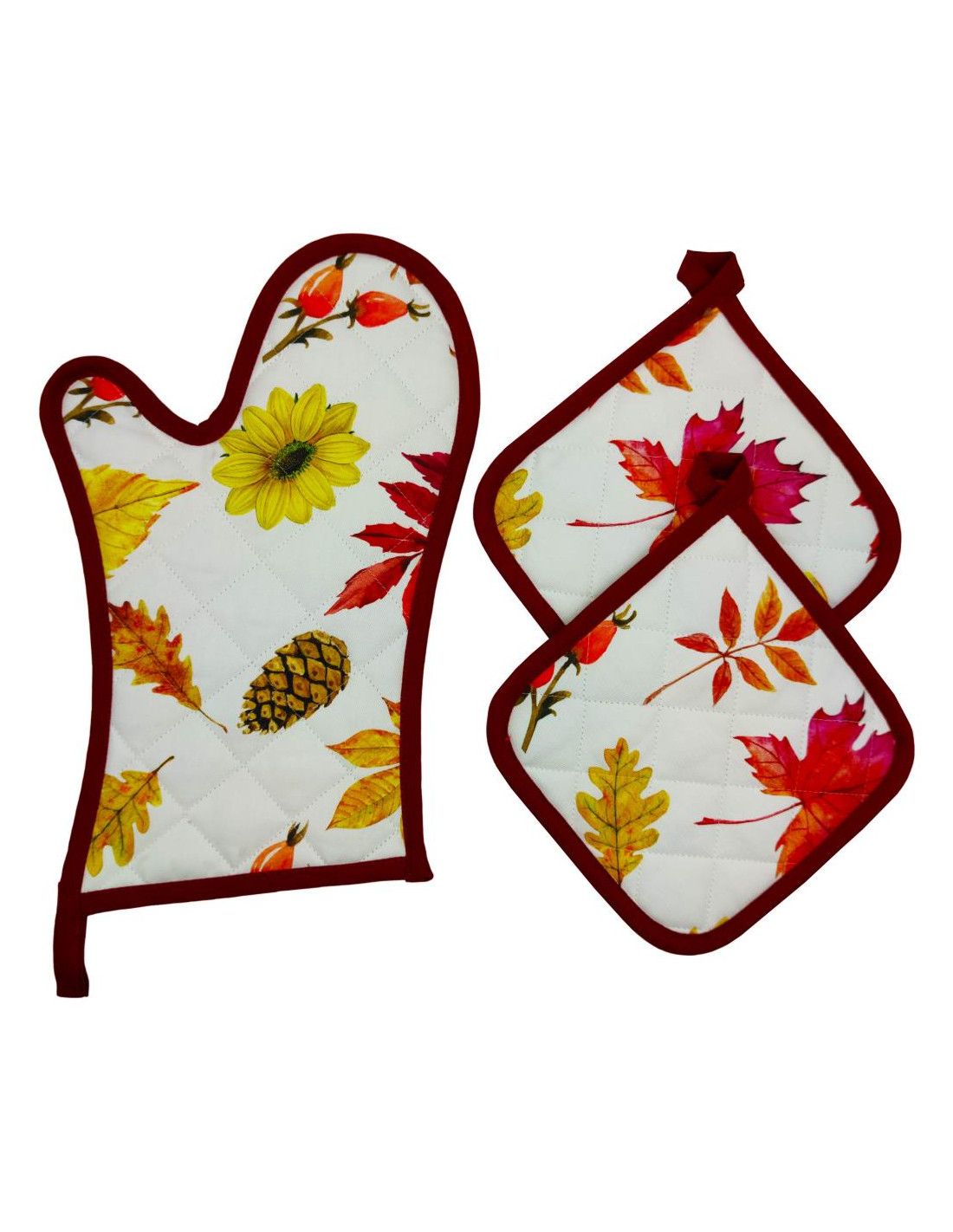 Set guanto e presine in puro cotone trapuntato con bordino tinta unita a