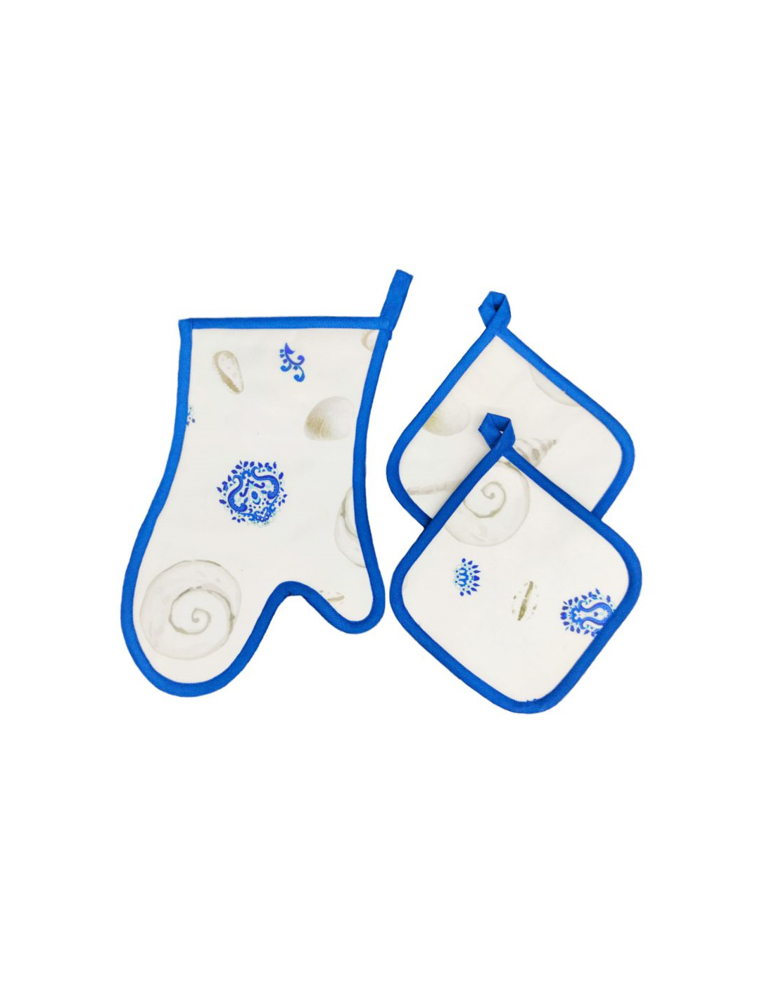 KIT PRESINE E GUANTO DA CUCINA IN COTONE A TEMA MARINO