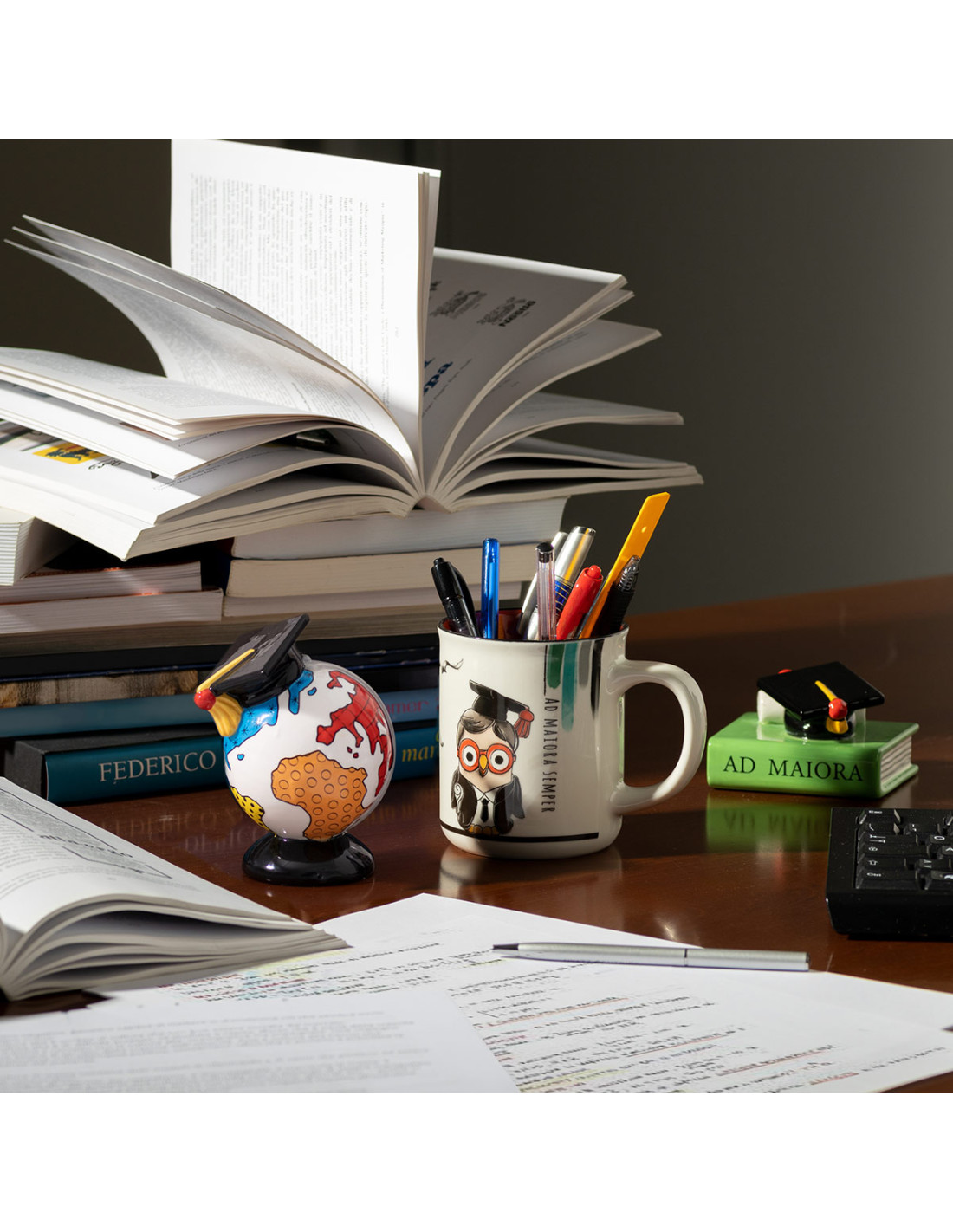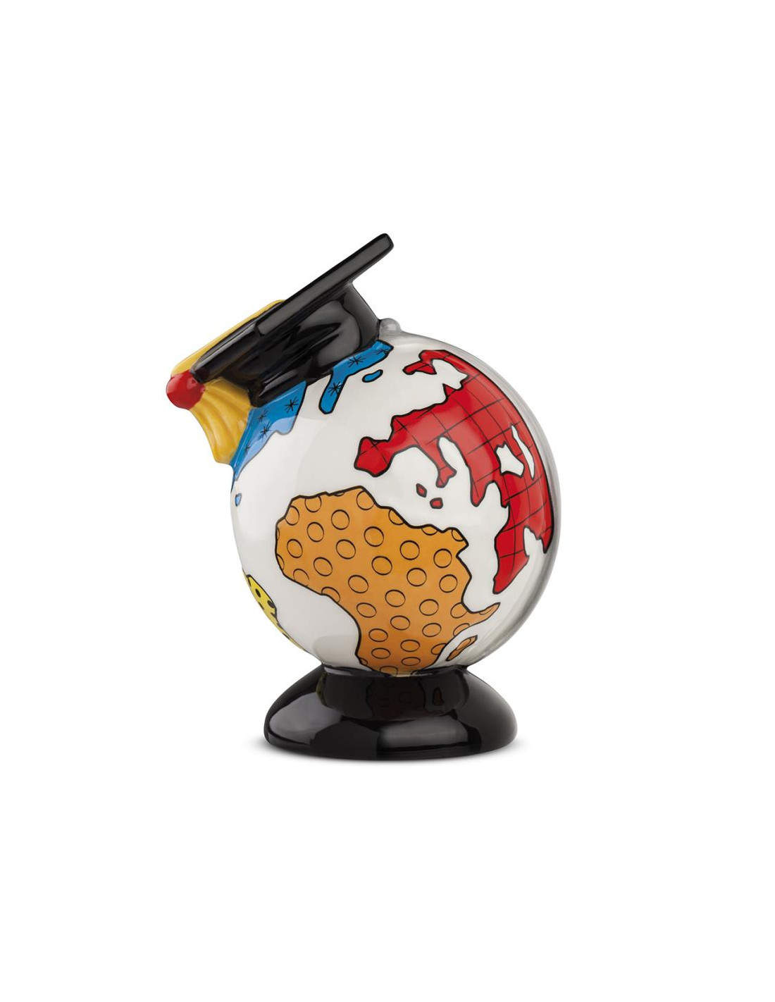 Un mappamondo in ceramica smaltata decorata a mano. Ideale come simpatica ed