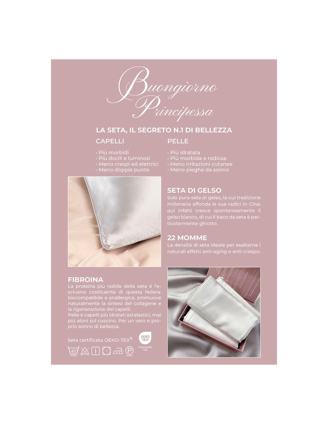 seta è l'esclusivo costituente di questa federa: biocompatibile e anallergica,