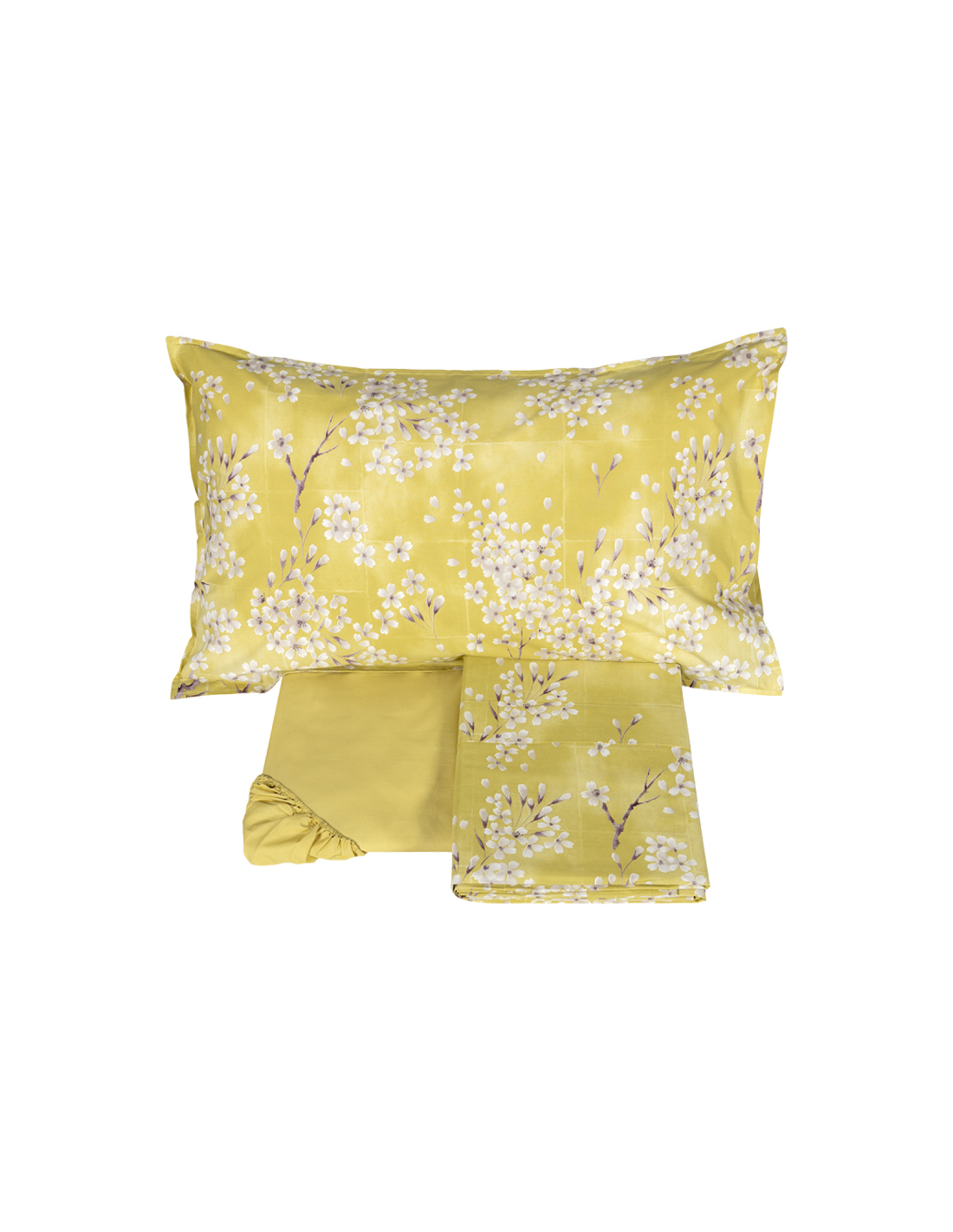 Completo lenzuola-copriletto matrimoniale Linea Kimono in Percalle di