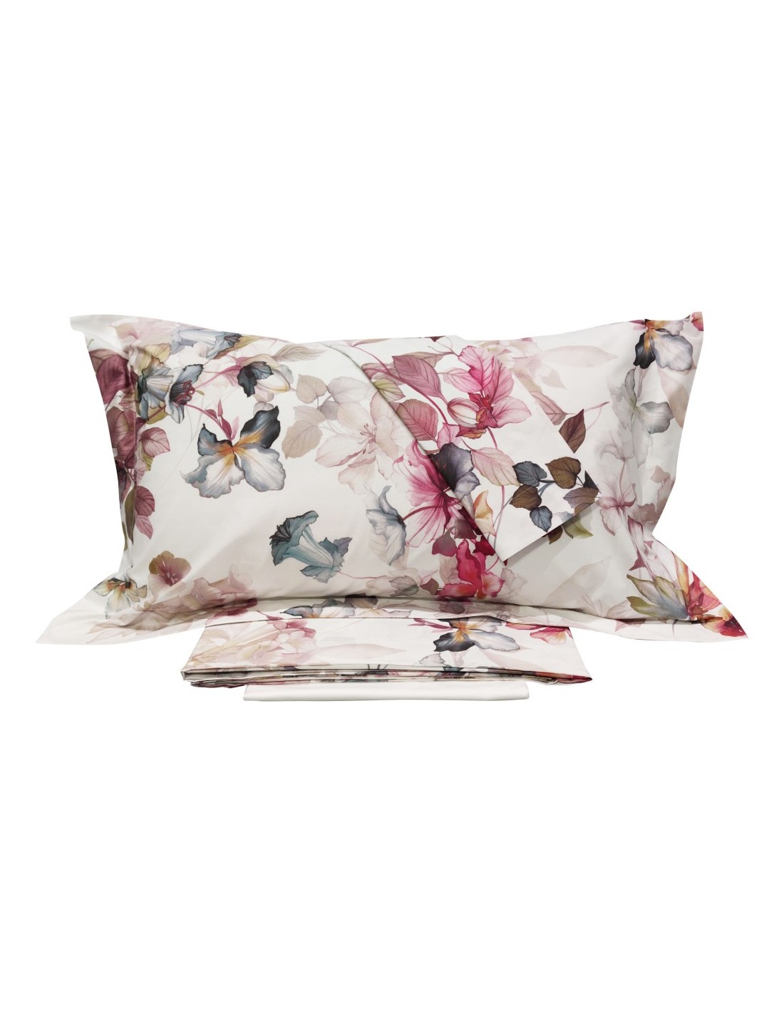 Completo lenzuola matrimoniale Forever collezione Lisa in Percalle di puro cotone stampato con lenzuolo sotto in percalle tinta unita.