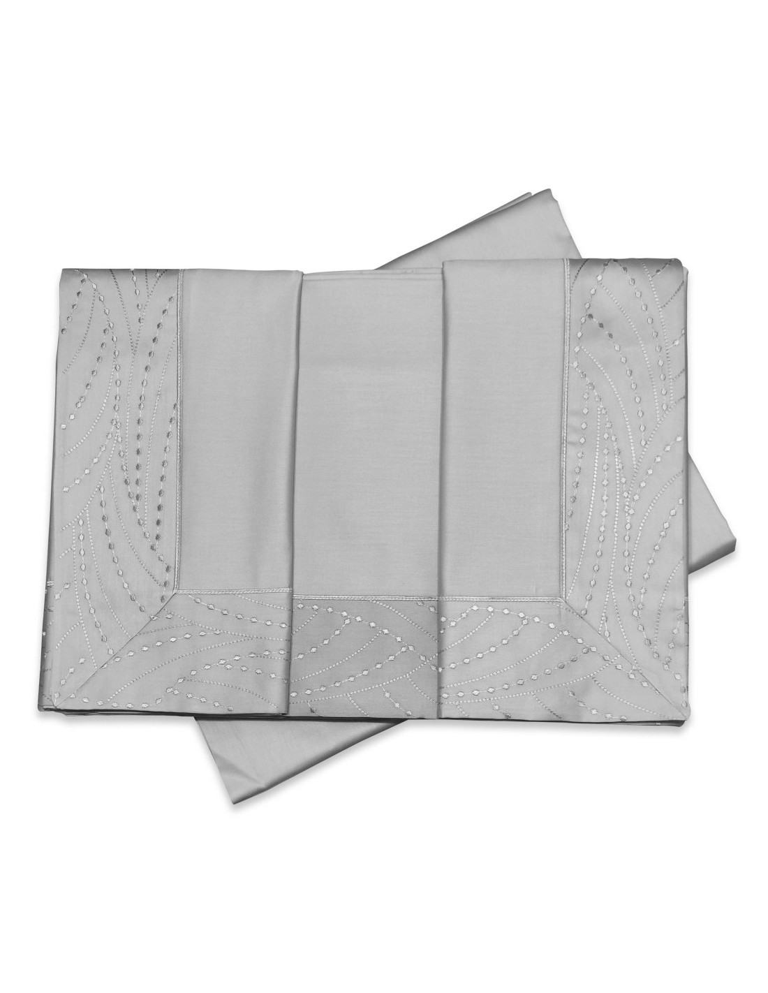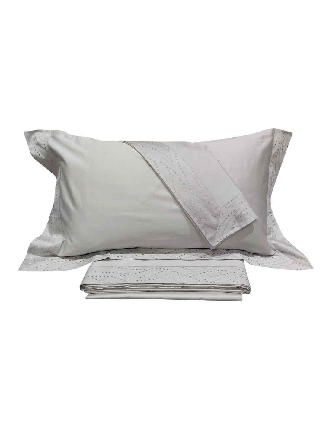Completo lenzuola matrimoniale Bic Decò in Raso di puro cotone, rifinito con balza ricamata.