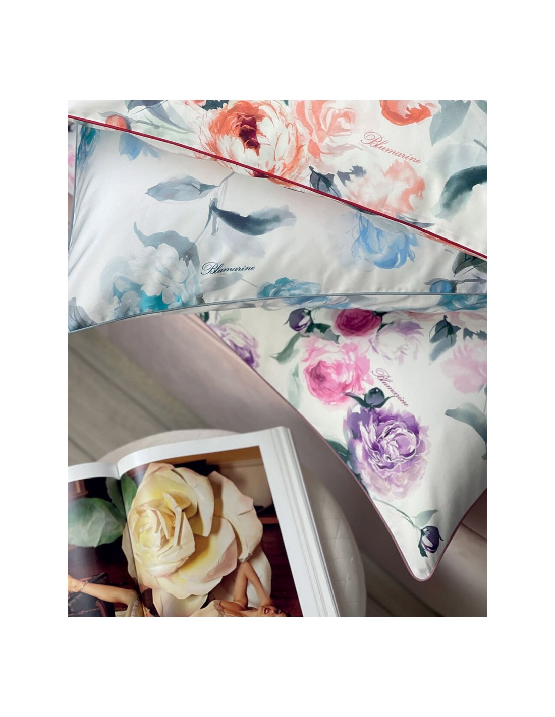 BLUMARINE COMPLETO LENZUOLA MATRIMONIALE IN RASO - BIANCOFIORE