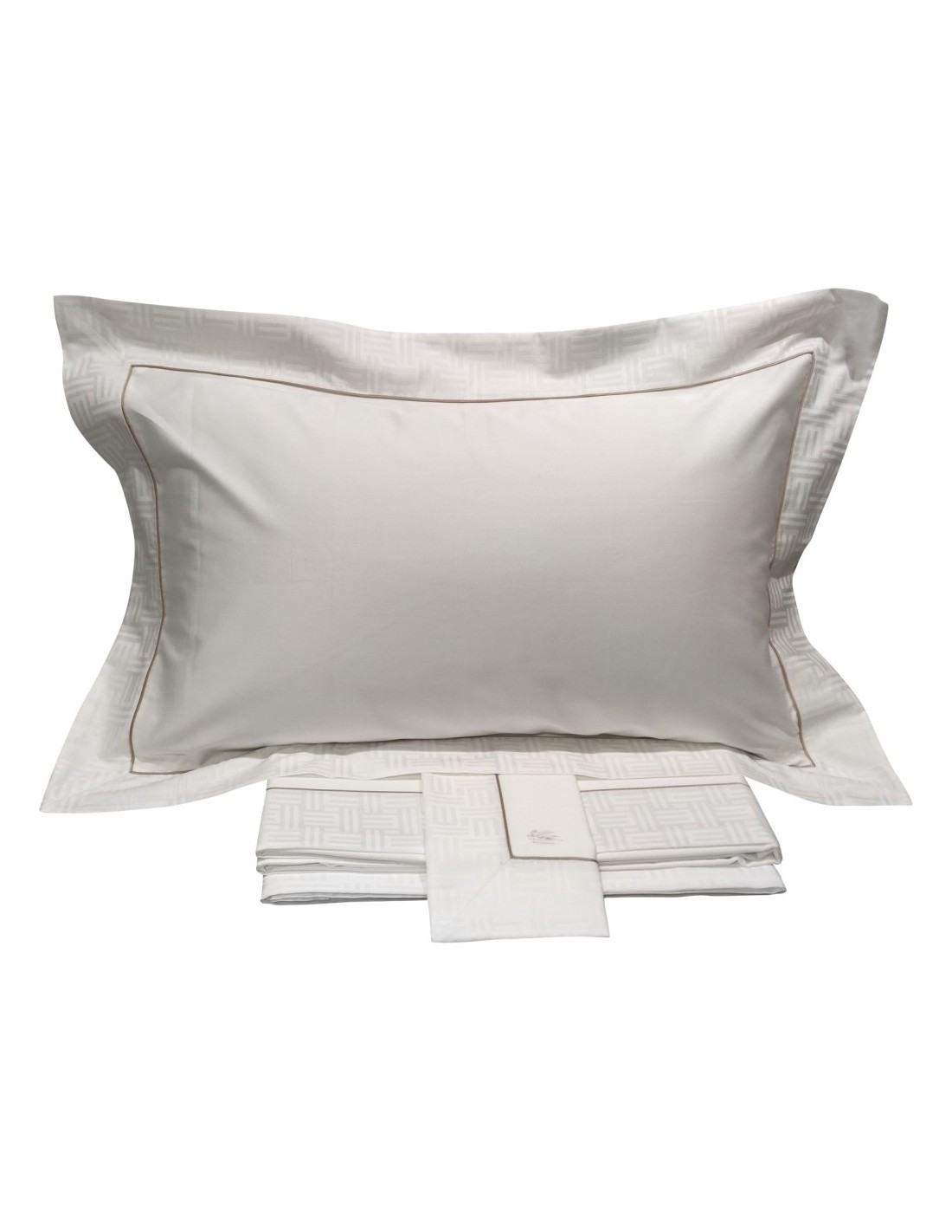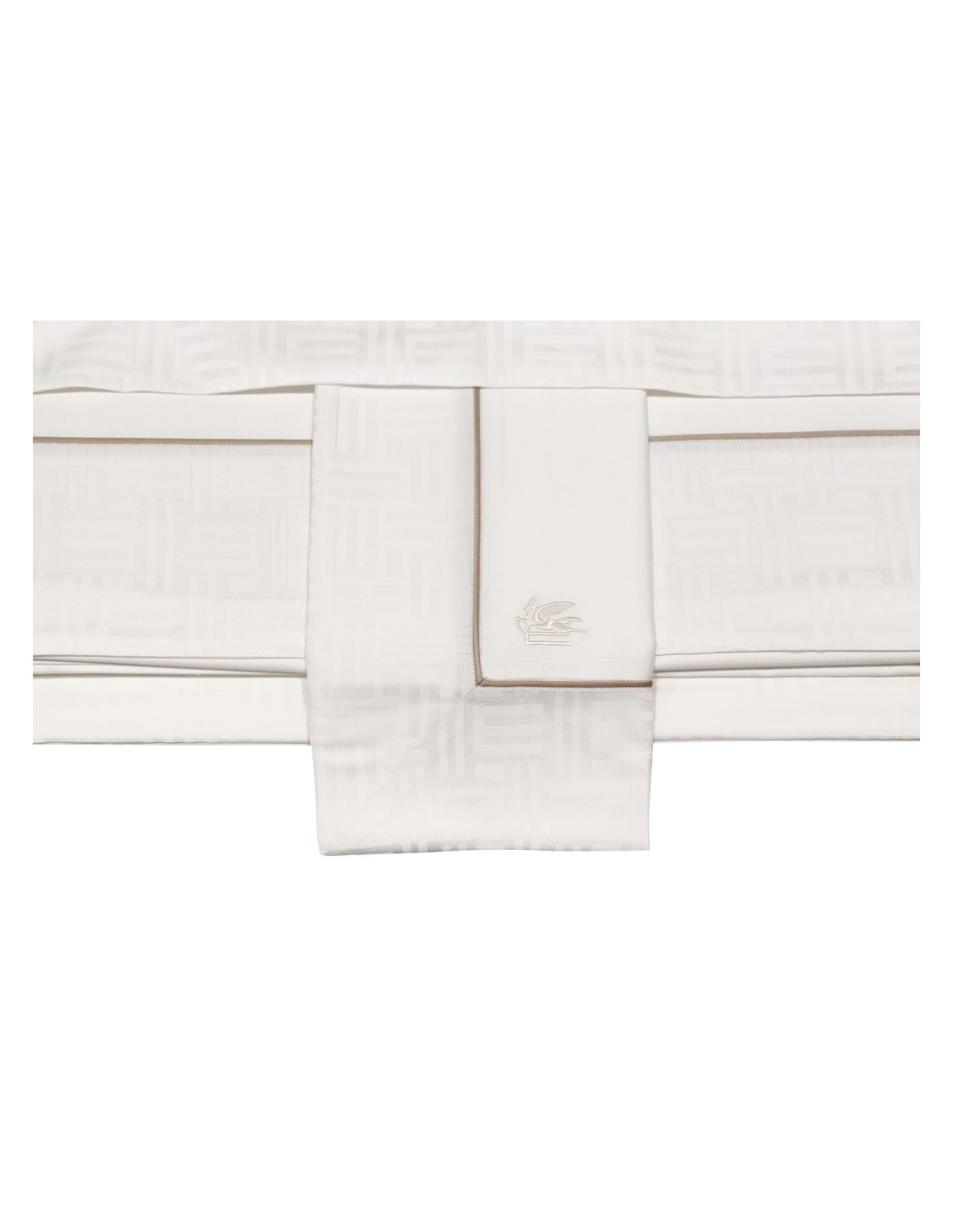 Completo lenzuola matrimoniale Etro in Raso di puro Cotone Jacquard rifinito con profilo beige: