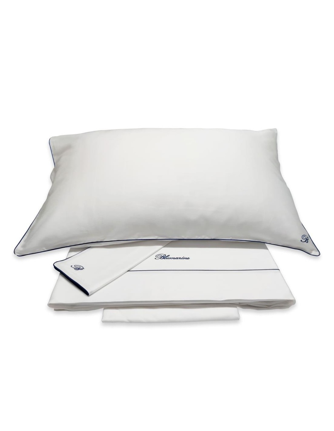 profilo a contrasto, federe a sacchetto con monogramma "B" ricamato, lenzuolo