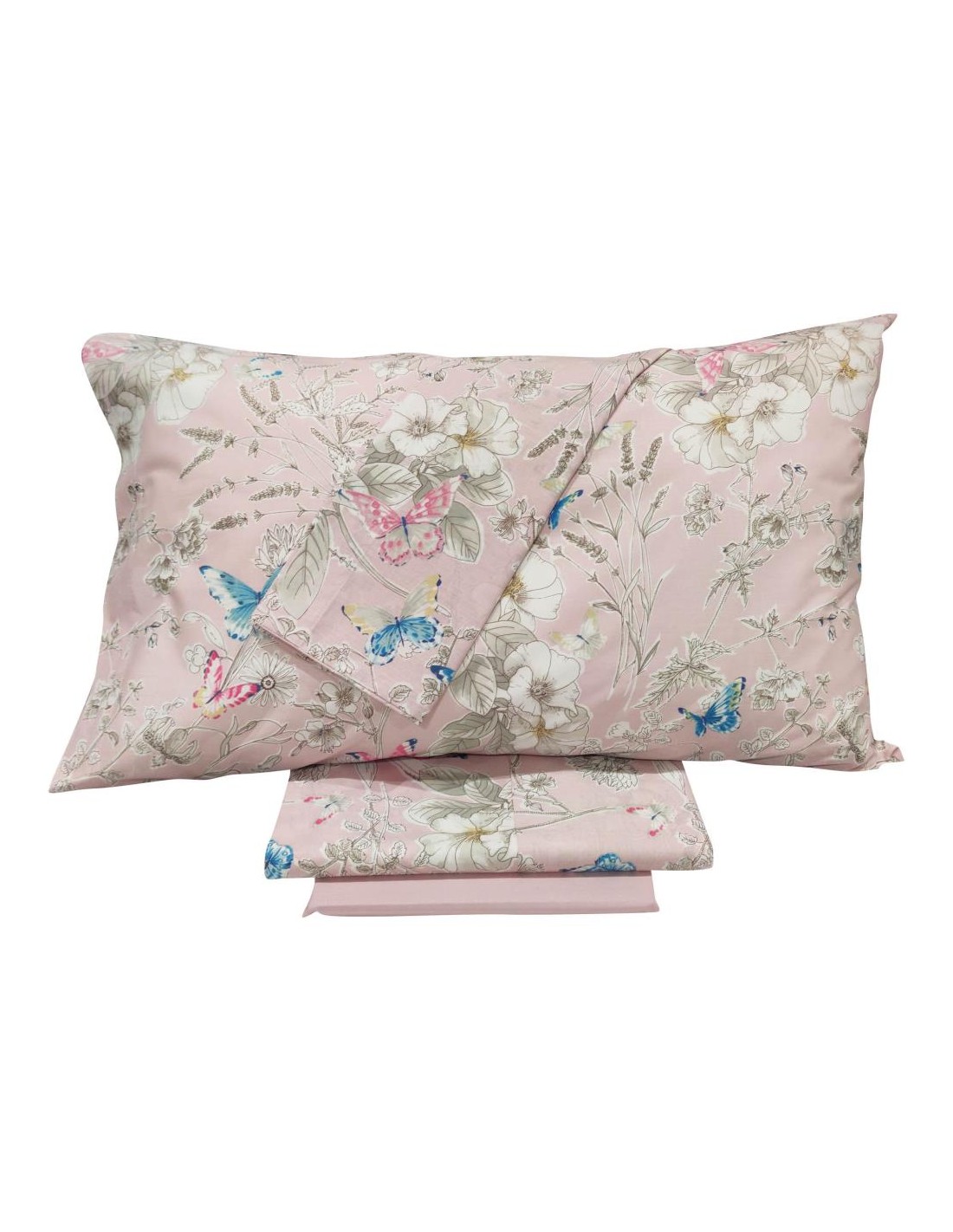 Completo lenzuola-copriletto matrimoniale linea Farfalle in puro cotone: