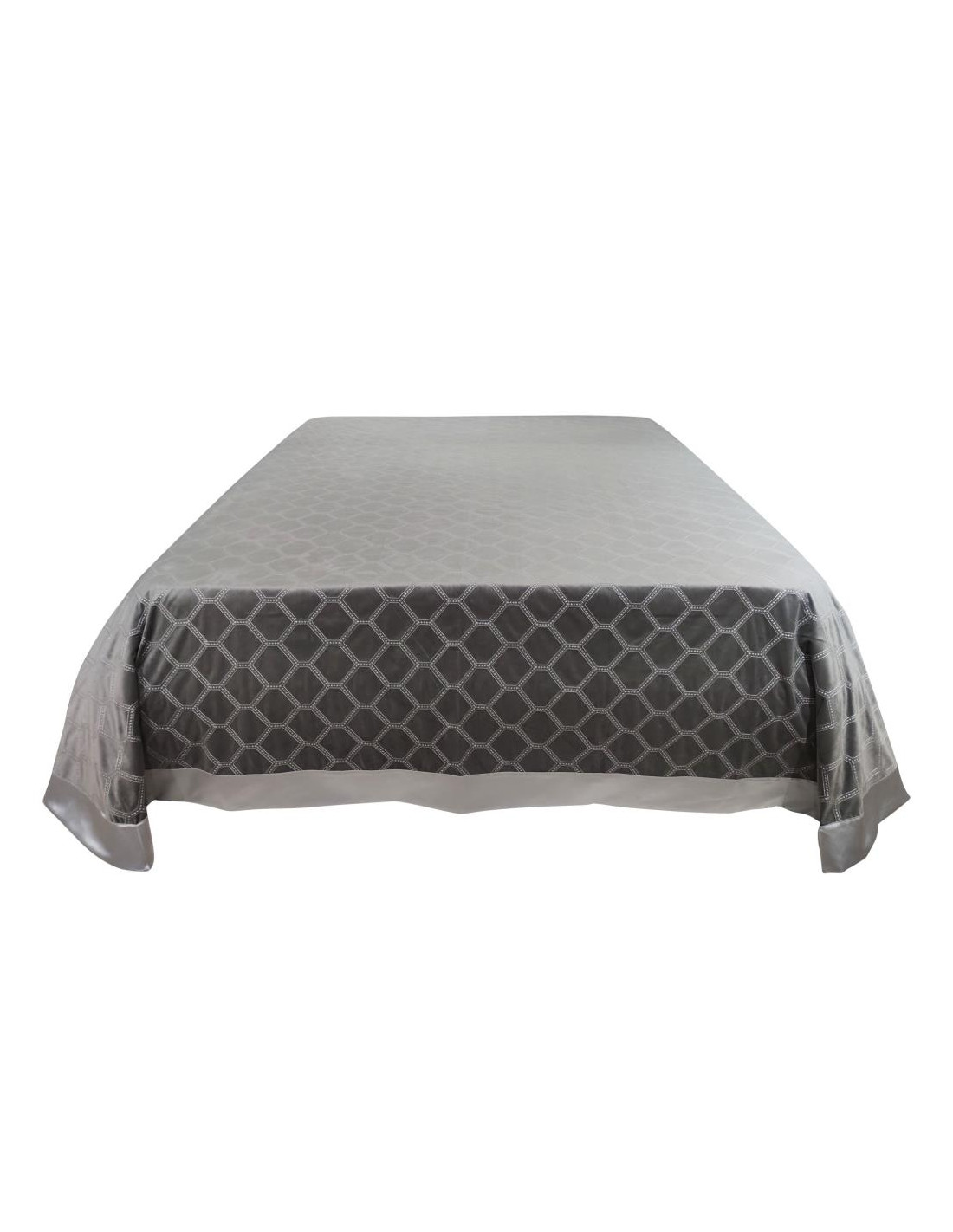 Copriletto estivo matrimoniale in velluto rifinito con esagoni ricamati e